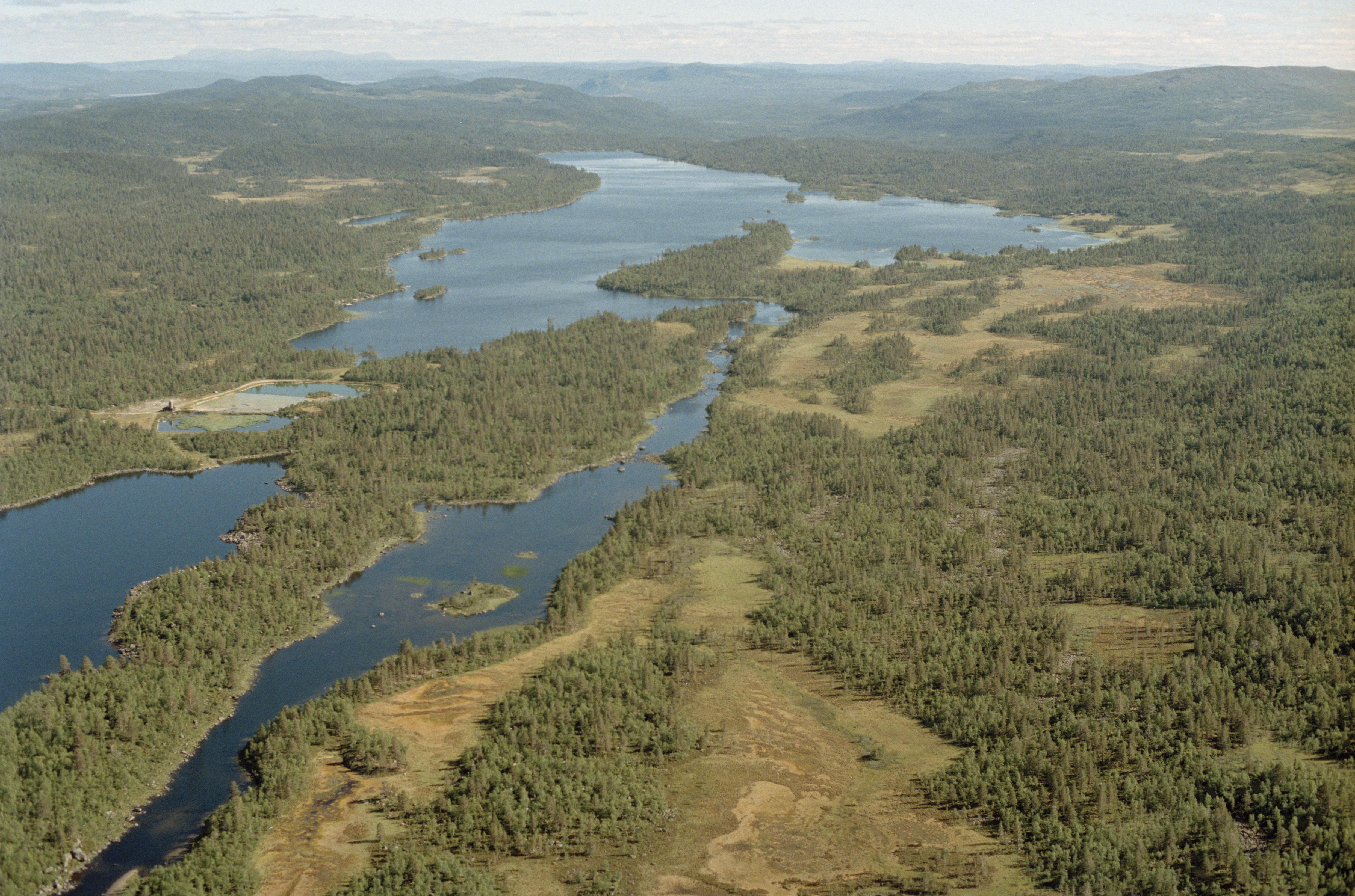 Beskrivning: I bildens nedre del Tännåns utlopp i Östersjön. Lillsjön nere till vänster. Vid bildens mitt boplatser RAÄnr Tännäs 186:1, 825:1, 828:1, 830:1 m.fl. Hjortviken uppe till höger. Bilden är tagen mot (väderstreck): SO
