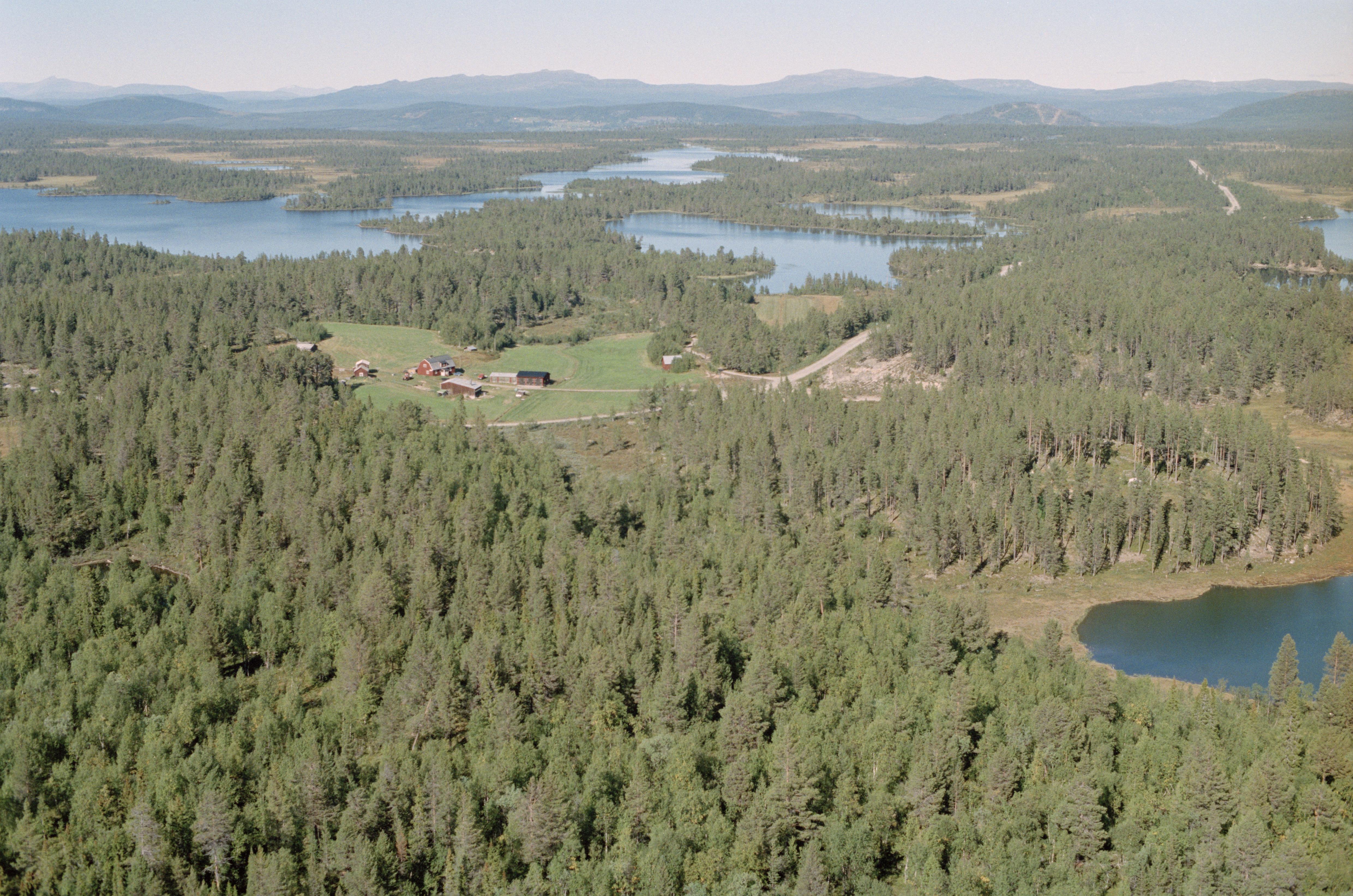 Beskrivning: Myskelåsens gård (ensamgård) söder om sjön Väster-Vattnan i Rogens naturreservat. I skogen i bildens nedre kant fångstgrop RAÄnr Tännäs 704:1. Bilden är tagen mot (väderstreck): N
