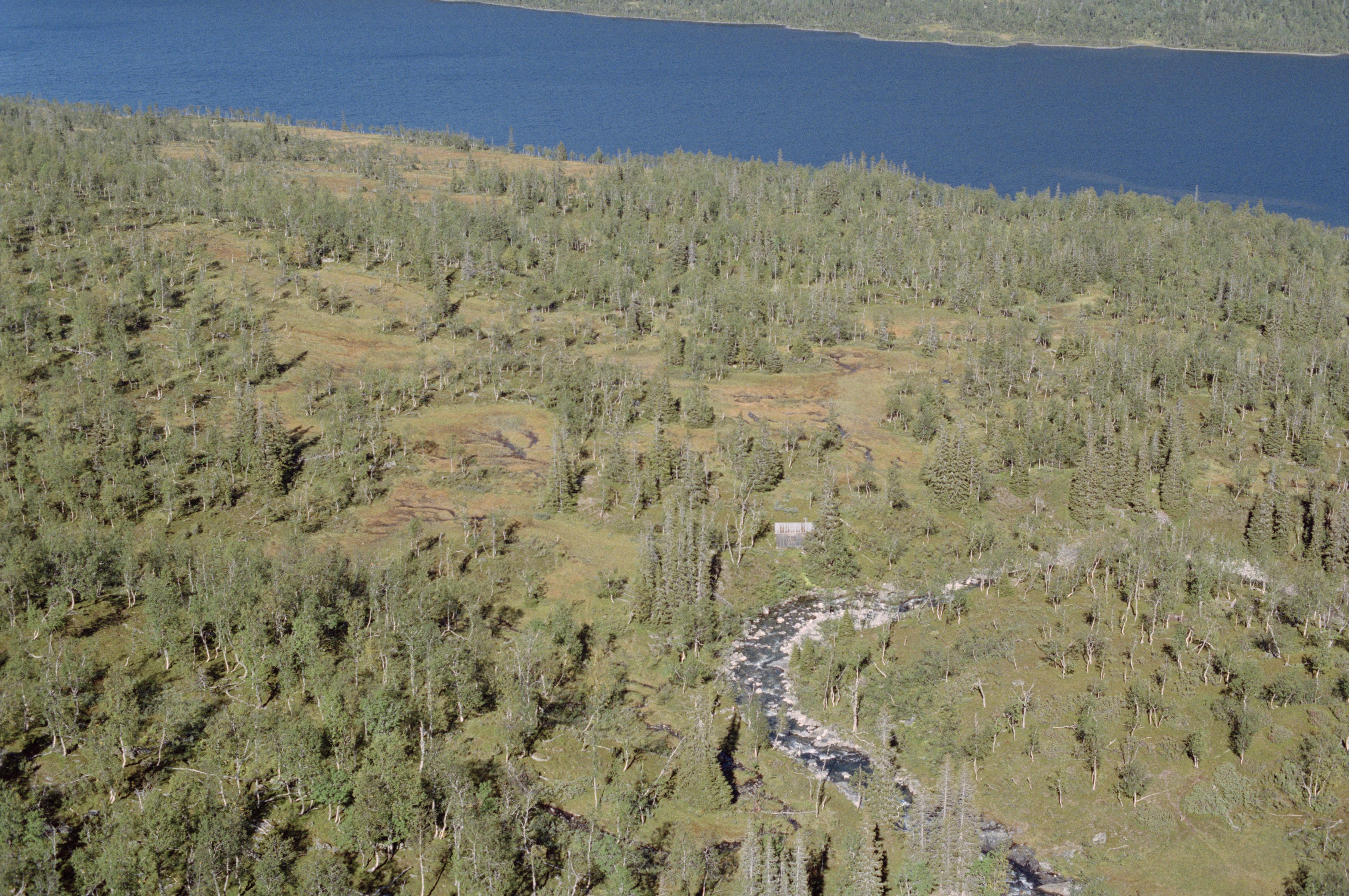 Beskrivning: Område på sydsidan av sjön Värjaren (Voerngere) i Daimadalens naturreservat. Vid bildens mitt en renvaktarstuga / sameviste RAÄnr Frostviken 301:1, 303:1 m.fl. vid bäcken Oratjokk (skrivs även Ovrehtjohke och Uretjukke) utlopp i sjön. Bilden är tagen mot (väderstreck): NO