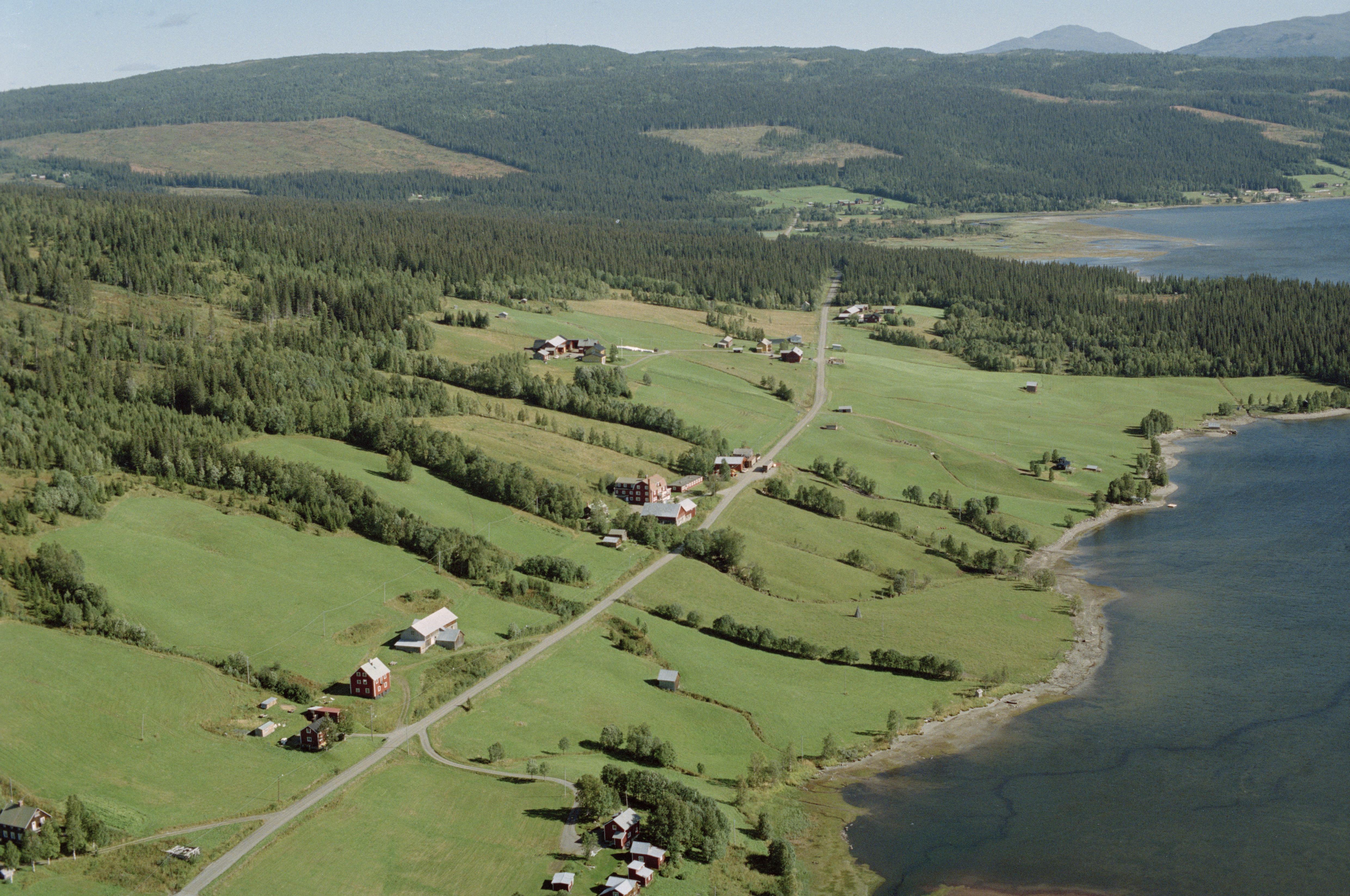 Beskrivning: Norra delen av sjön Lill-Jorm. Jormliens by söder om Lerdalen och berget Jormliklumpen. I skogen till vänster över bildens mitt fornlämning RAÄnr Frostviken 160:1. Bilden är tagen mot (väderstreck): ONO