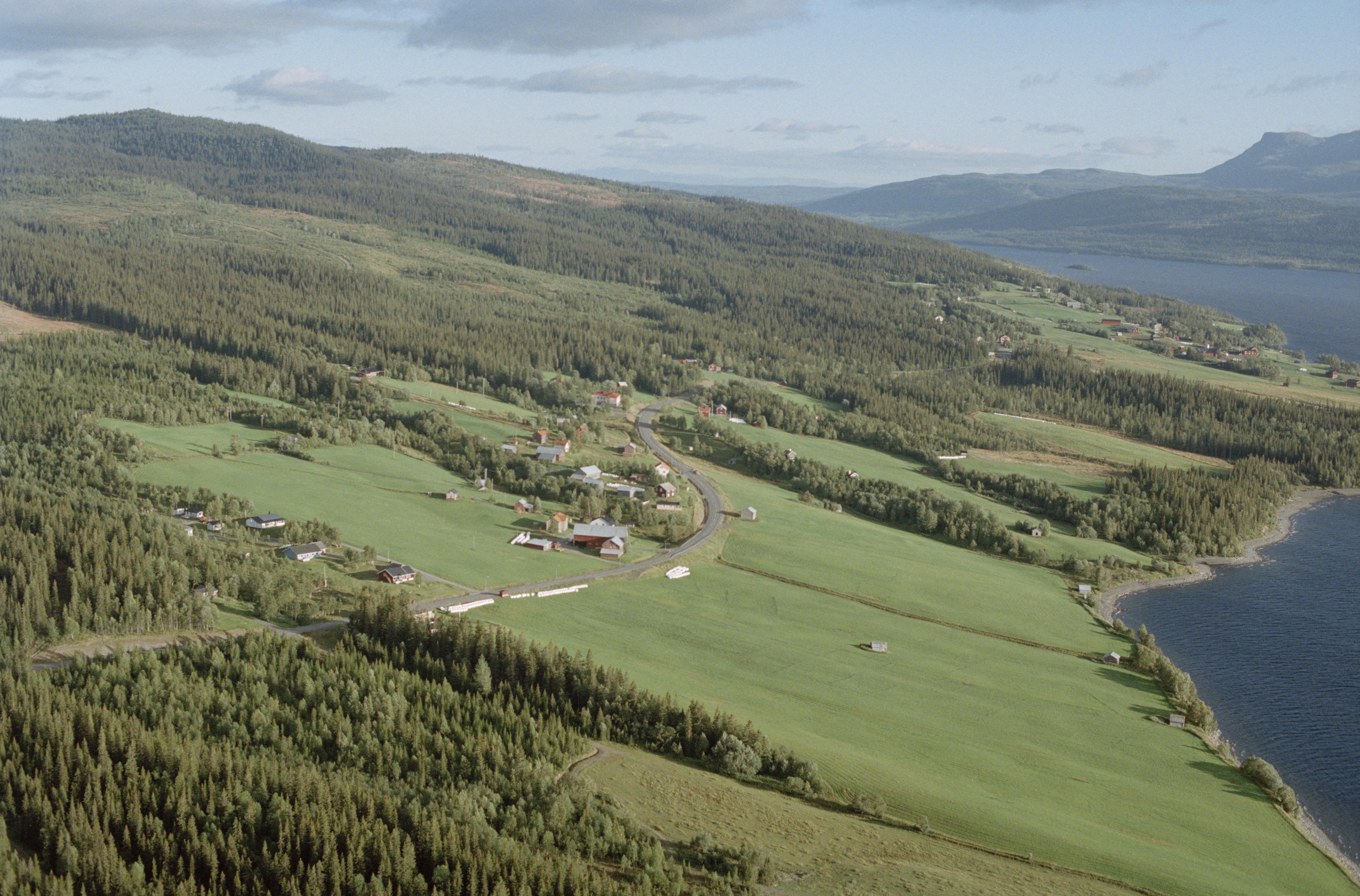Beskrivning: Kallbygden vid Kallsjön. Vid bildens mitt Vassnäs, söder om Malnäset. Vid vägen vägmärke RAÄnr Kall 201:1-2. Till höger över bildens mitt byn Kall-Rör. Bilden är tagen mot (väderstreck): SSO