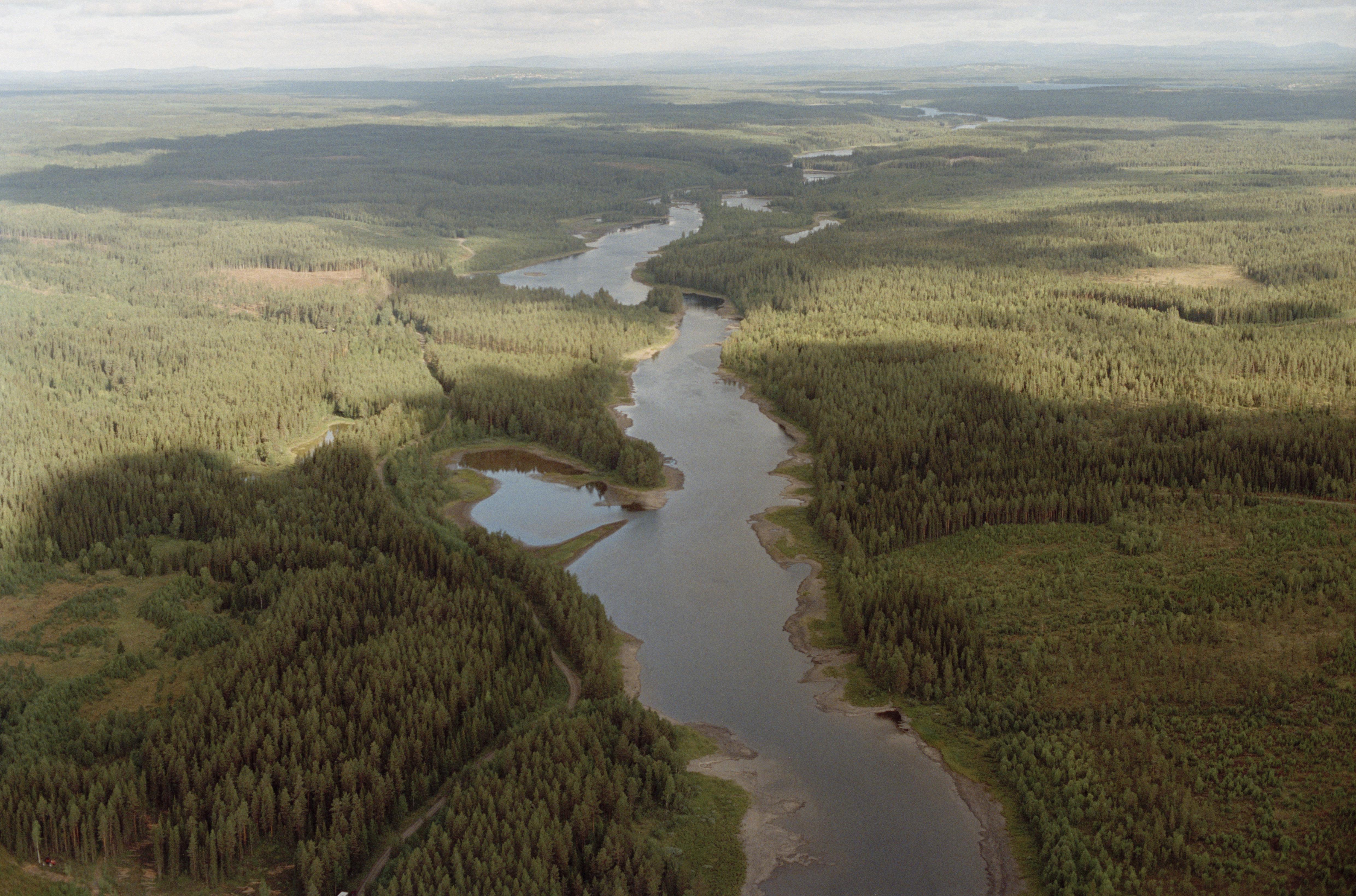 Beskrivning: Älven Hårkan som markerar gränsen mellan socknen Lit (till vänster) och Häggenås (till höger). Vid bildens mitt fångstgropssystem RAÄnr Lit 42:1 vid Aspnäset. Till höger om bildens mitt boplats RAÄnr Häggenås 187:1. Bilden är tagen mot (väderstreck): N