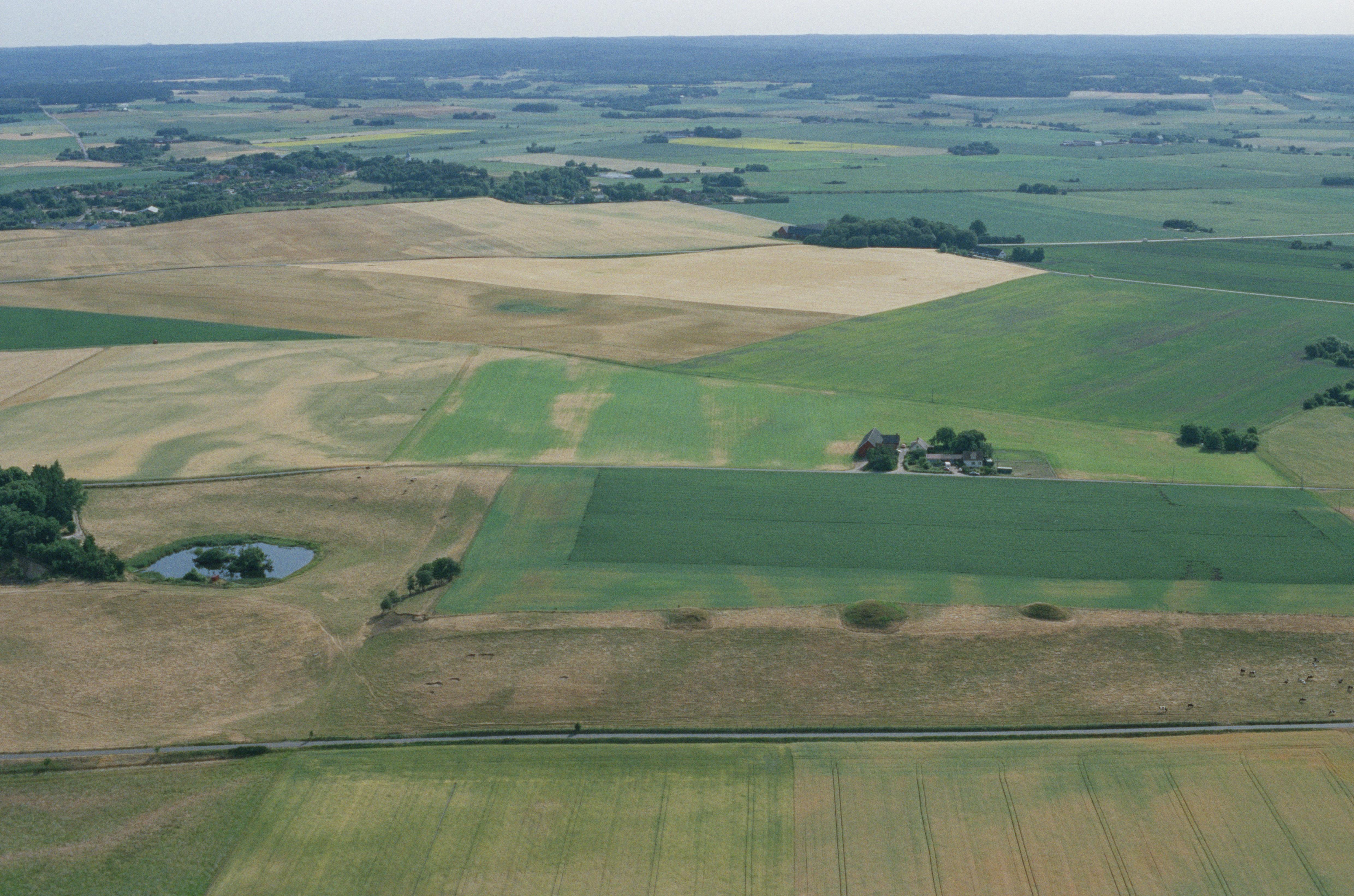 Beskrivning: Truedsgården. Gravhögar RAÄnr Eldsberga 2:1, 3:1, 4:1 m.fl. under bildens mitt. Bilden är tagen mot (väderstreck): ONO