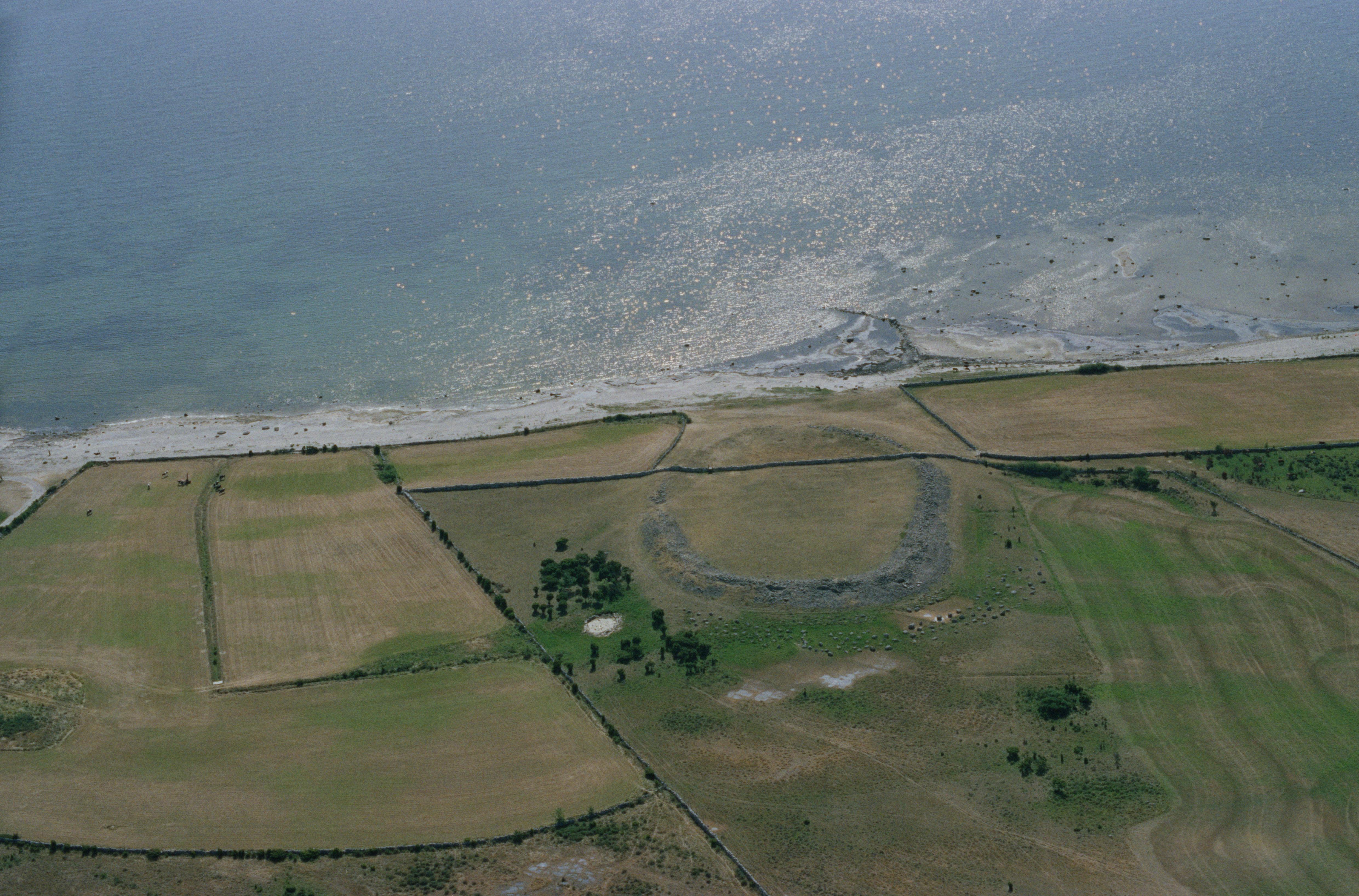 Beskrivning: Vid Alvaret. Fornborg Sandbyborg (skrivs även Sandby borg) RAÄnr Sandby 45:1 vid bildens mitt. Bilden är tagen mot (väderstreck): Ö