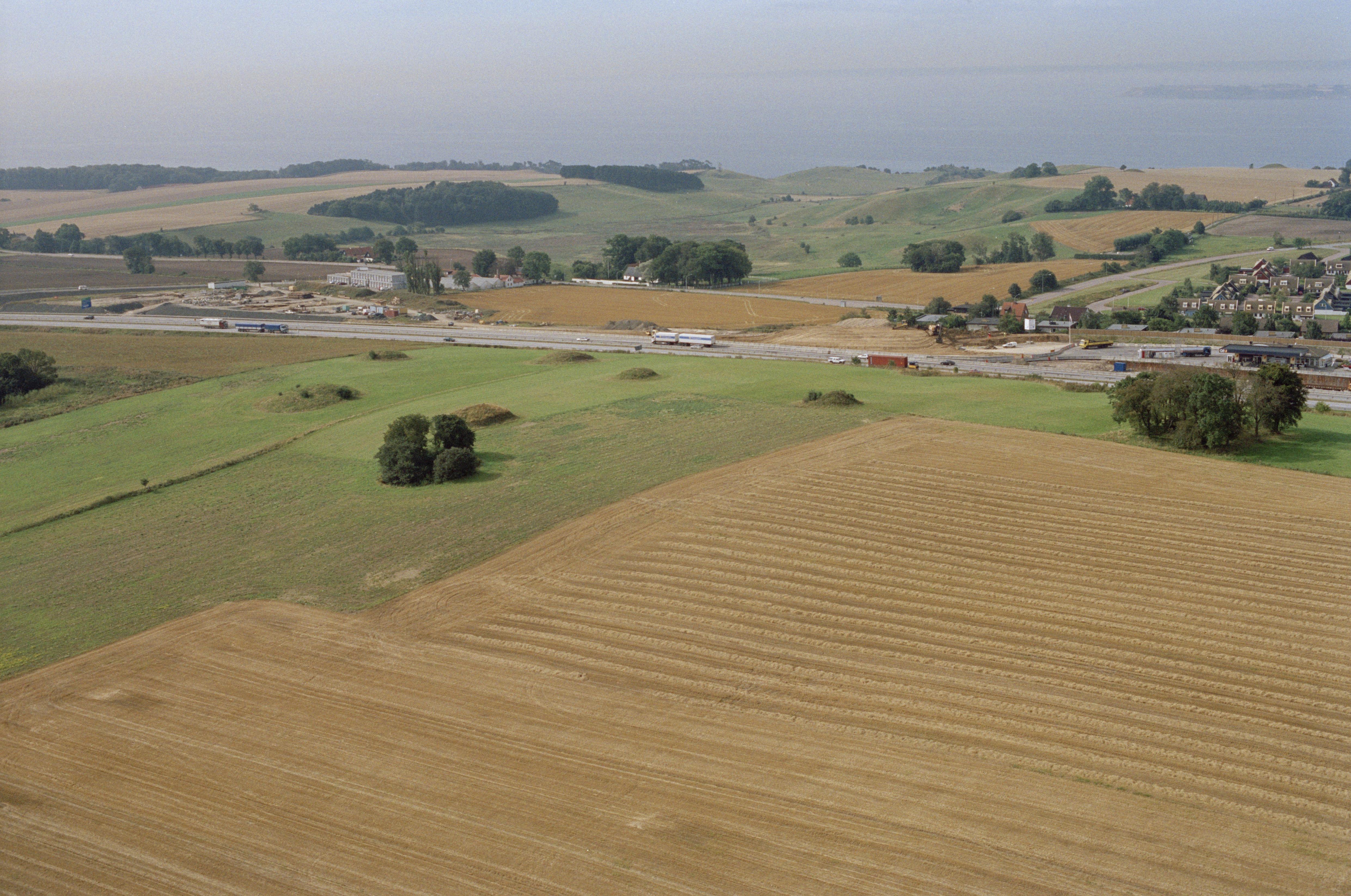 Beskrivning: Anmärkning (övrig): Riksintresse-nr/namn: M10a - Råå-åns dalgång. Socken: delen i Asmundtorp, Glumslöv, Härslöv, Säby, Vadensjö och Örja socknar. Motivering: Dalgångsbygd kring Råå-ån och svagt kuperat öppet odlingslandskap där ett omfattande och landskapsdominerande fornlämningsbestånd vittnar om bosättningskontinuitet alltsedan stenåldern. Stora bymiljöer, gårds- och säteribildningar som väl speglar traktens bosättningsmönster och byggnadsskick samt genom dalgångens rika lerfyndigheter, lämningar efter stenkols- och lerbrytning samt betydande tillverkning av tegel och lergods fr.o.m. 1800-talets slut. (Vägmiljö, Slottslandskap, Boställsmiljö, Industrimiljö). - Uttryck för riksintresset: Talrika landskapsdomi(…) Texten i detta fält har förkortats vid migrering till e-arkivet. Se filbilagan extra.xml för fullständig information under note_archivist. Beskrivning: Björne högar vid sockengränsen Glumslöv - Härslöv. RAÄnr Glumslöv 12:1, 13:1, 14:2, 79:1, RAÄnr Härslöv 4:1, 5:1, 6:1 m.fl. vid Glumslövs golfbana och Hilleshög. Bilden är tagen mot (väderstreck): SV Fotosyfte: Flygbildsdokumentation