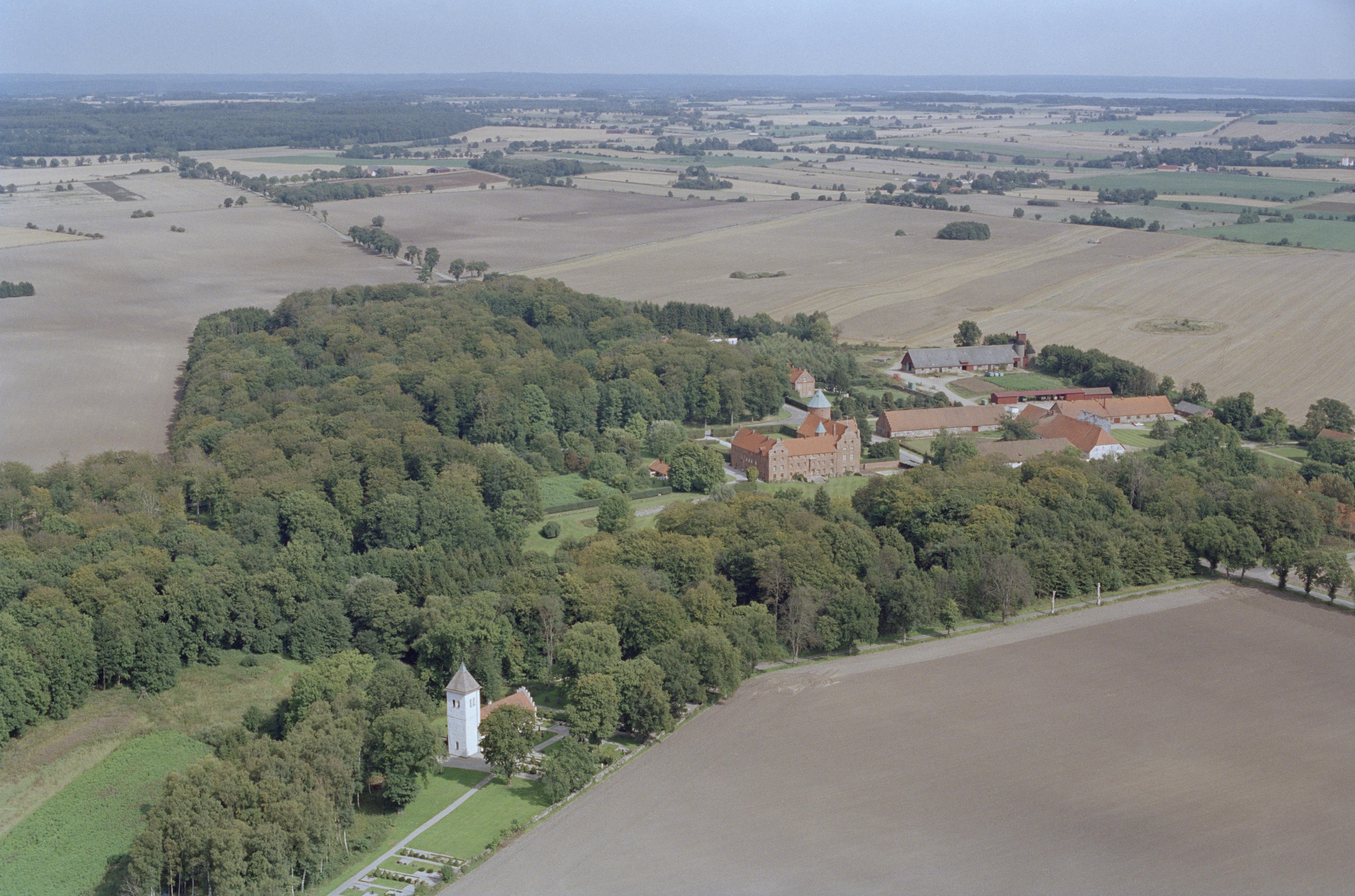 Beskrivning: Skarhults kyrka och Skarhults slott vid Bråån. Bilden är tagen mot (väderstreck): ONO