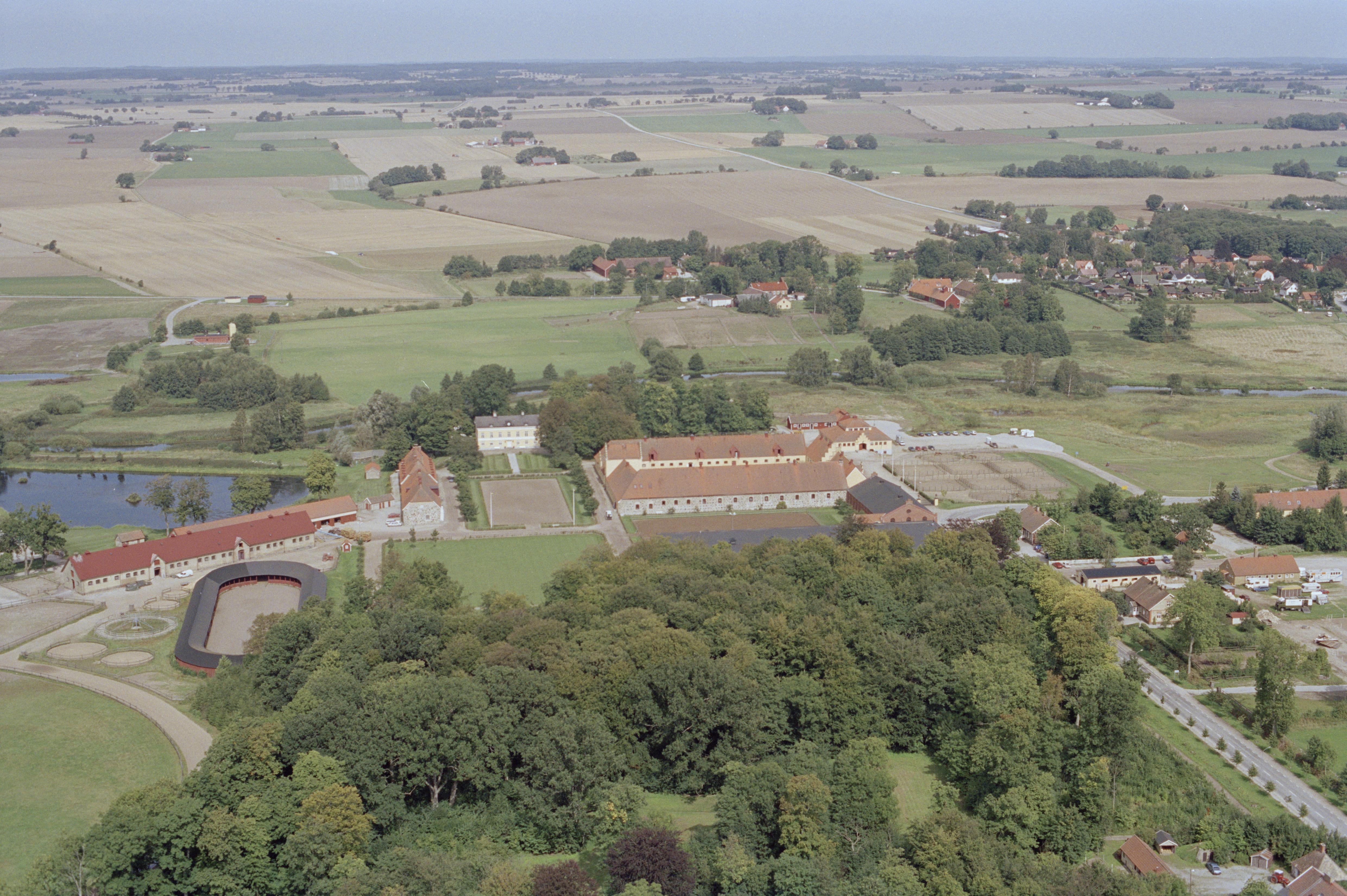 Beskrivning: Anmärkning (övrig): Riksintresse-nr/namn: M80a ? Svenstorp - Viderup <Hviderup> - Flyinge - Västra Hoby. Socken: delen i Håstad, Igelösa, Odarslöv och Södra Sandby socknar. Motivering: Vidsträckt slottslandskap och odlingslandskap kring Kävlingeån med förhistorisk bruknings- och bosättningskontinuitet som sedan stormaktstiden präglats av godsförvaltningen vid slotten Svenstorp och Hviderup samt Flyinge kungsgård och de spår förvaltningen lämnat på såväl landskapets utformning som på bebyggelsens och kyrkornas utveckling inom området. (Vägmiljö, Kvarnmiljö). - Uttryck för riksintresset: Talrika fornlämningsmiljöer i form av stenkammargravar, dösar, gånggrifter från stenåldern samt bronsåldersgravfält med monume(…) Texten i detta fält har förkortats vid migrering till e-arkivet. Se filbilagan extra.xml för fullständig information under note_archivist. Beskrivning: Flyinge herrgård / kungsgård vid Kävlingeån. Bilden är tagen mot (väderstreck): N Fotosyfte: Flygbildsdokumentation