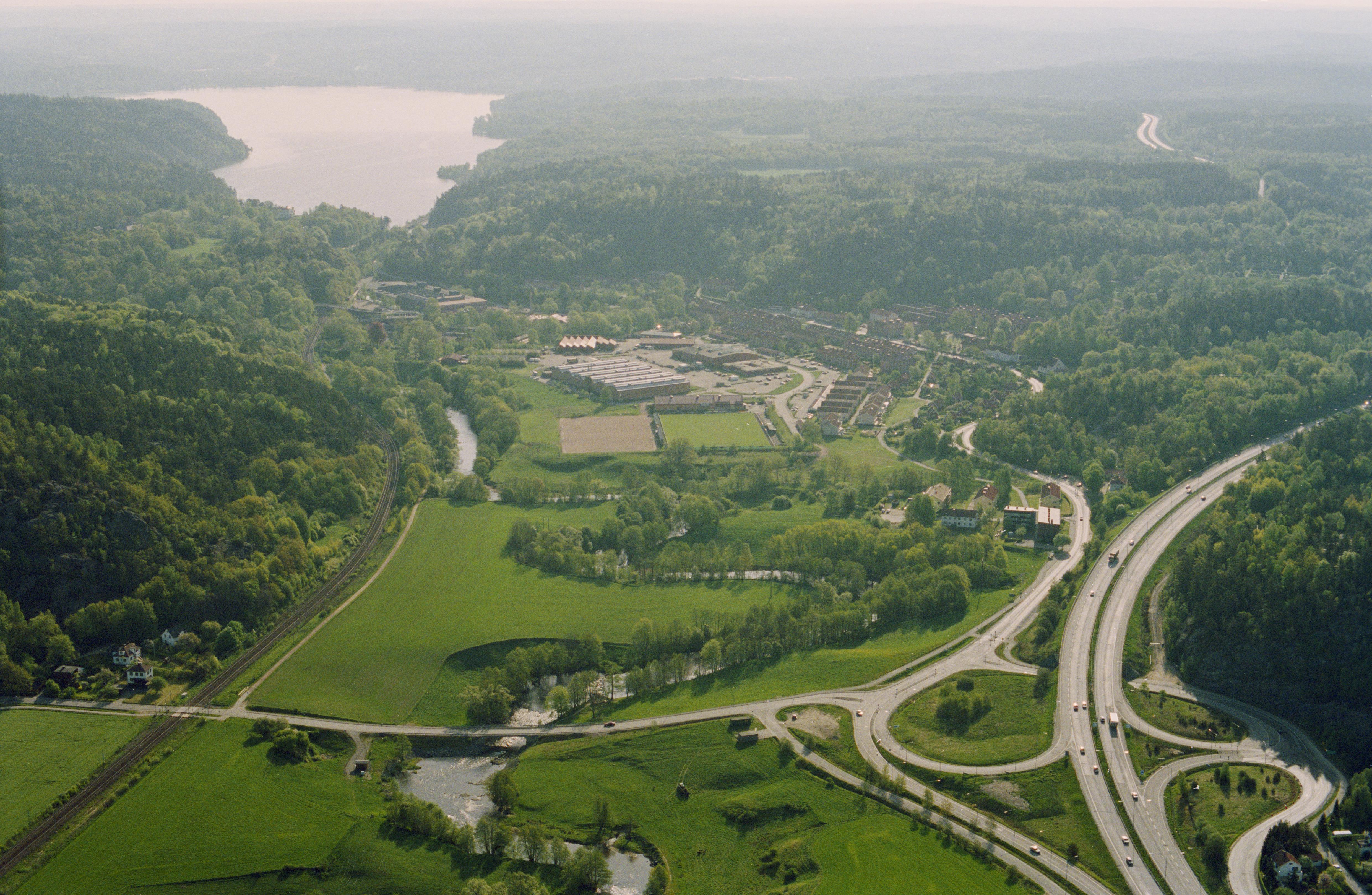 Beskrivning: Jonsereds tätort vid sjön Aspen. Jonsereds kyrka till höger vid bildens mitt. Bilden är tagen mot (väderstreck): Ö
