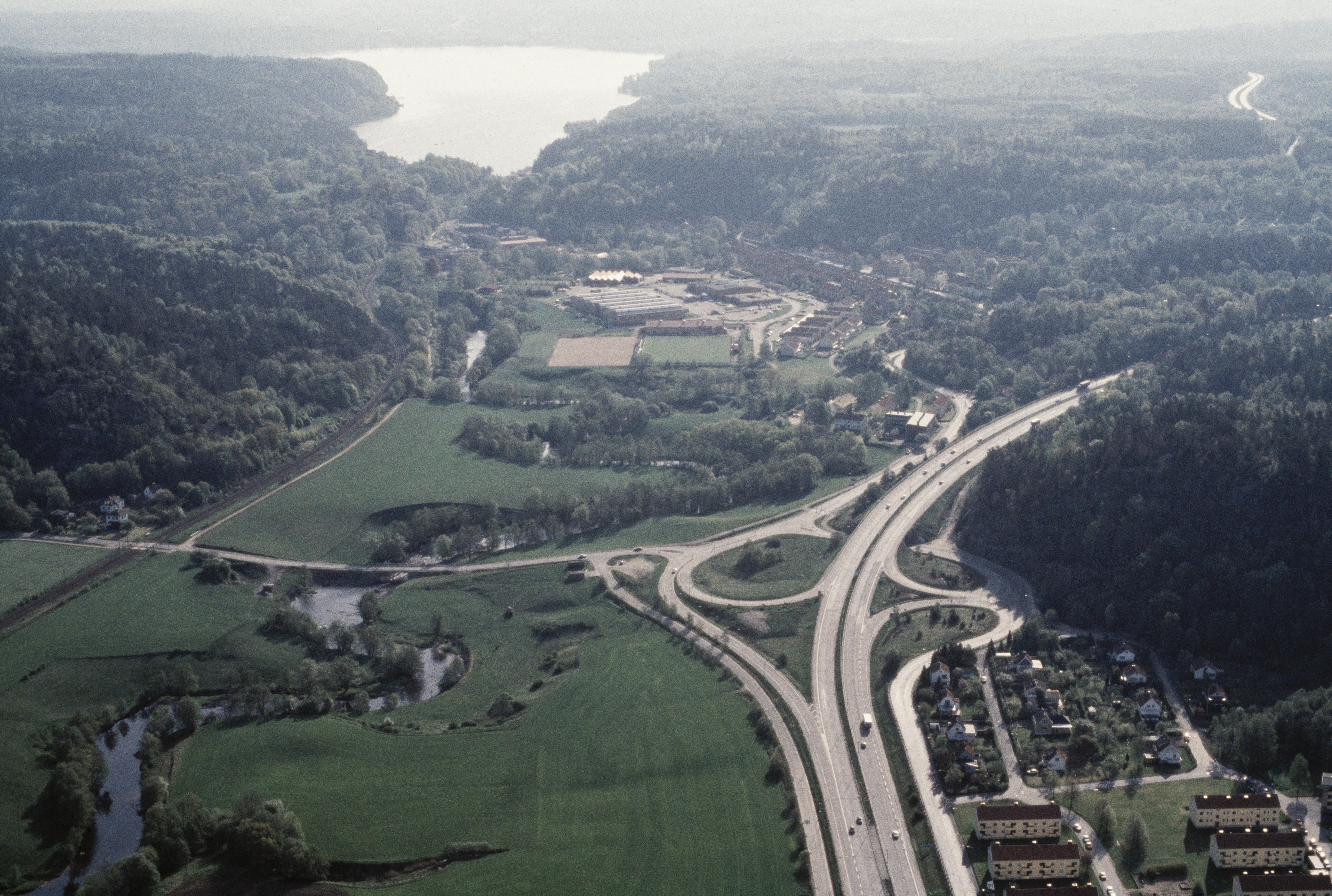 Beskrivning: Jonsereds tätort vid sjön Aspen. Jonsereds kyrka till höger vid bildens mitt. Bilden är tagen mot (väderstreck): ONO
