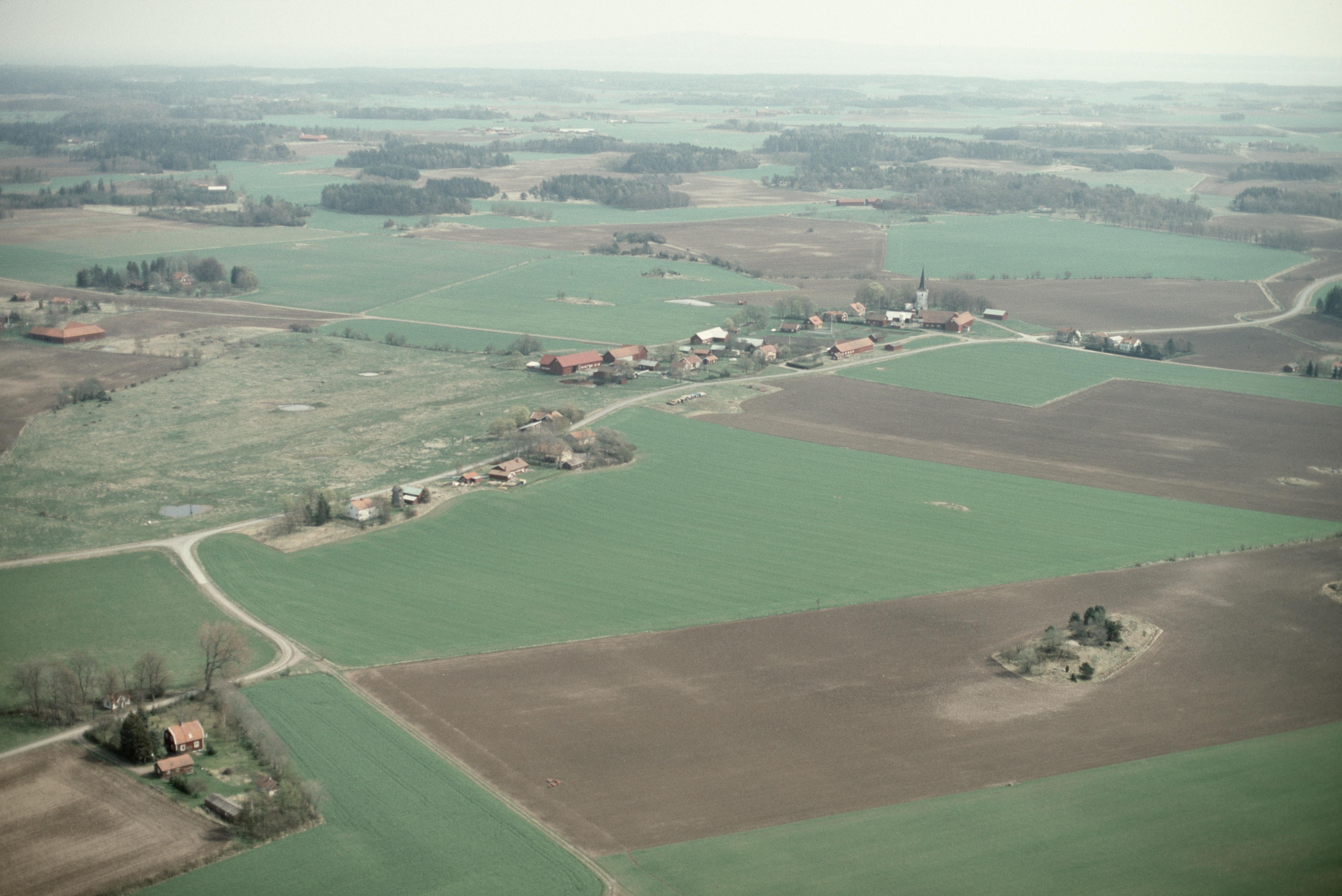 Beskrivning: Rackeby kyrka och kyrkby. Bilden är tagen mot (väderstreck): Ö