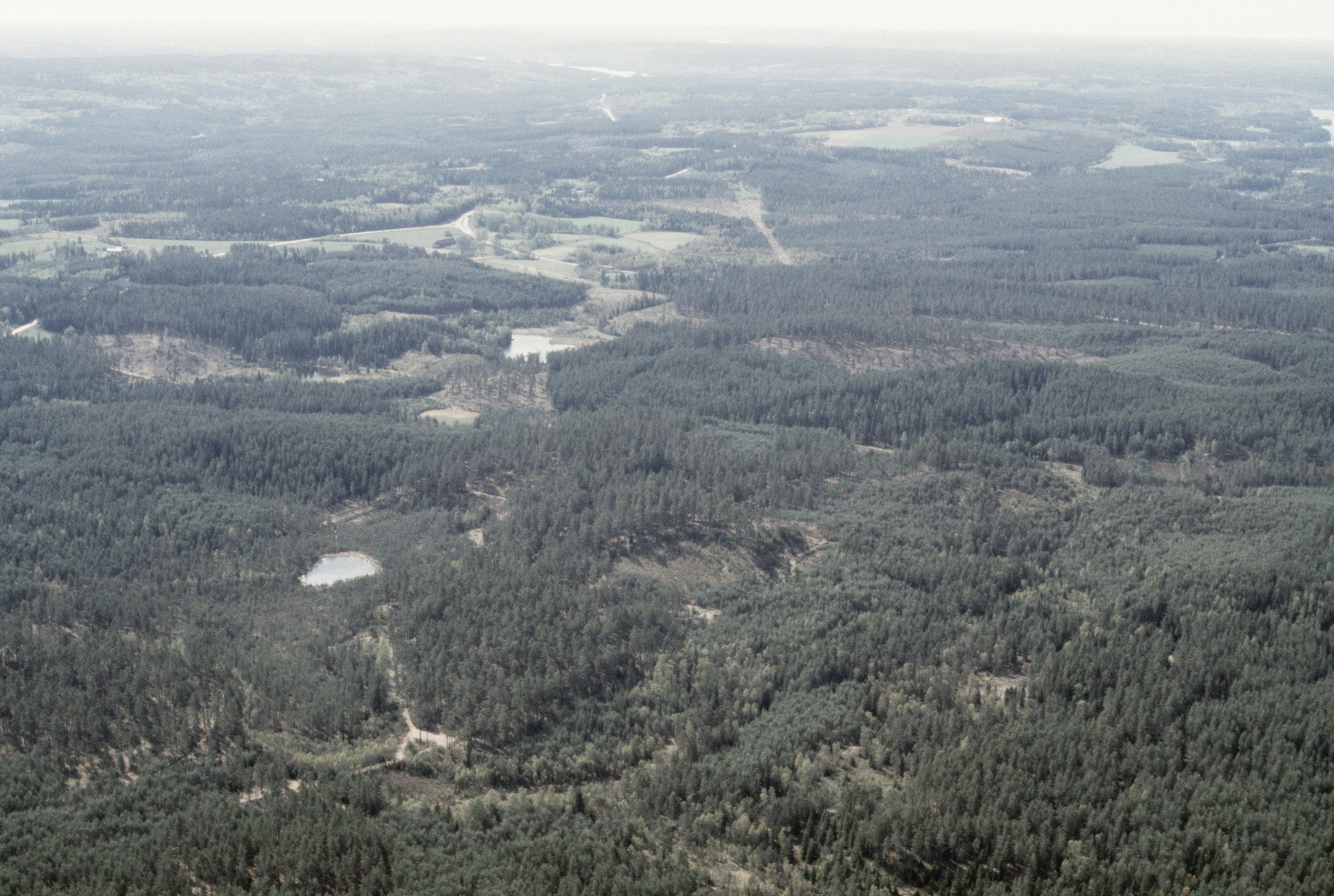 Beskrivning: Område med hålvägar i Kymbo tall RAÄnr Kymbo 48:1. Djupaflogen till vänster och Lövbergsvadet vid bildens mitt. I bildens övre del Slättäng i Sandhems socken. Bilden är tagen mot (väderstreck): S