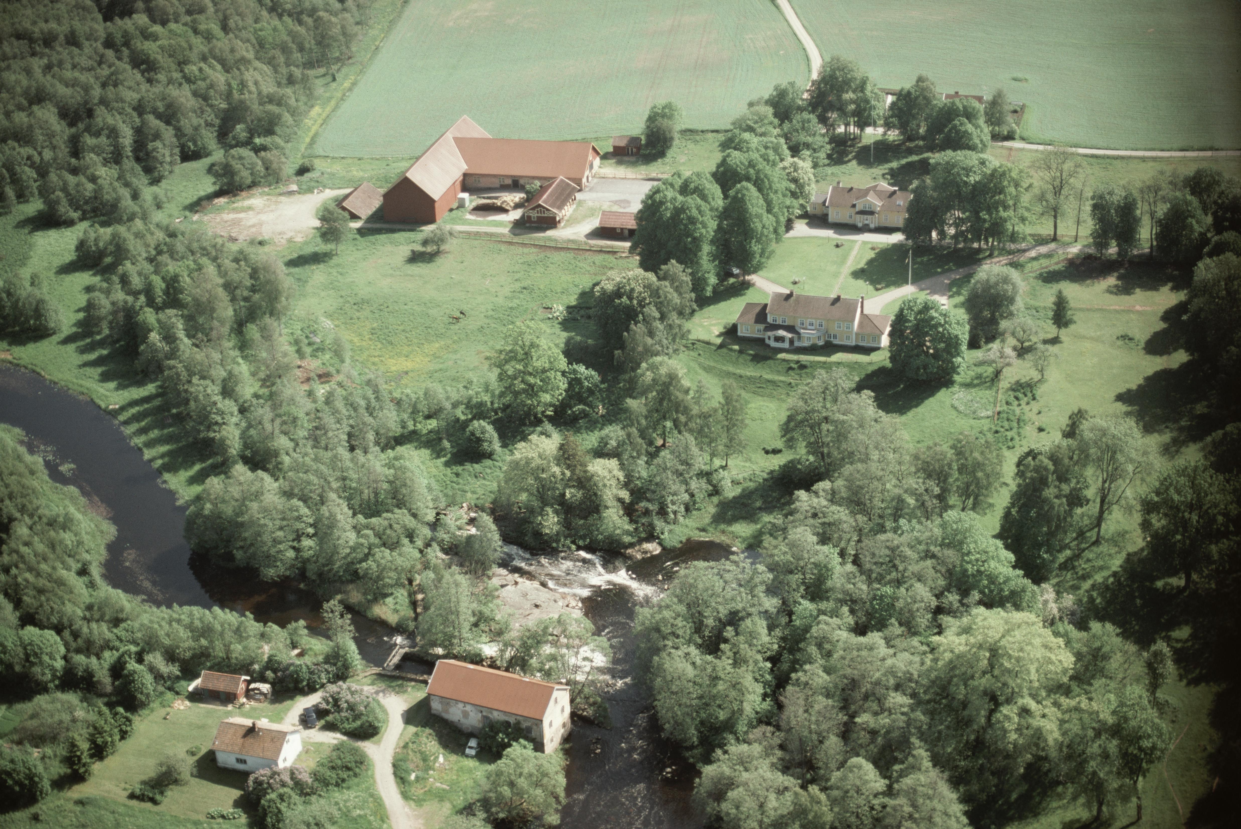 Beskrivning: Säveån markerar gränsen mellan socknen Kullings-Skövde och Siene (i bildens övre del). Wårgårda herrgård. I bildens nedre del kvarn RAÄnr Siene 228. Bilden är tagen mot (väderstreck): S