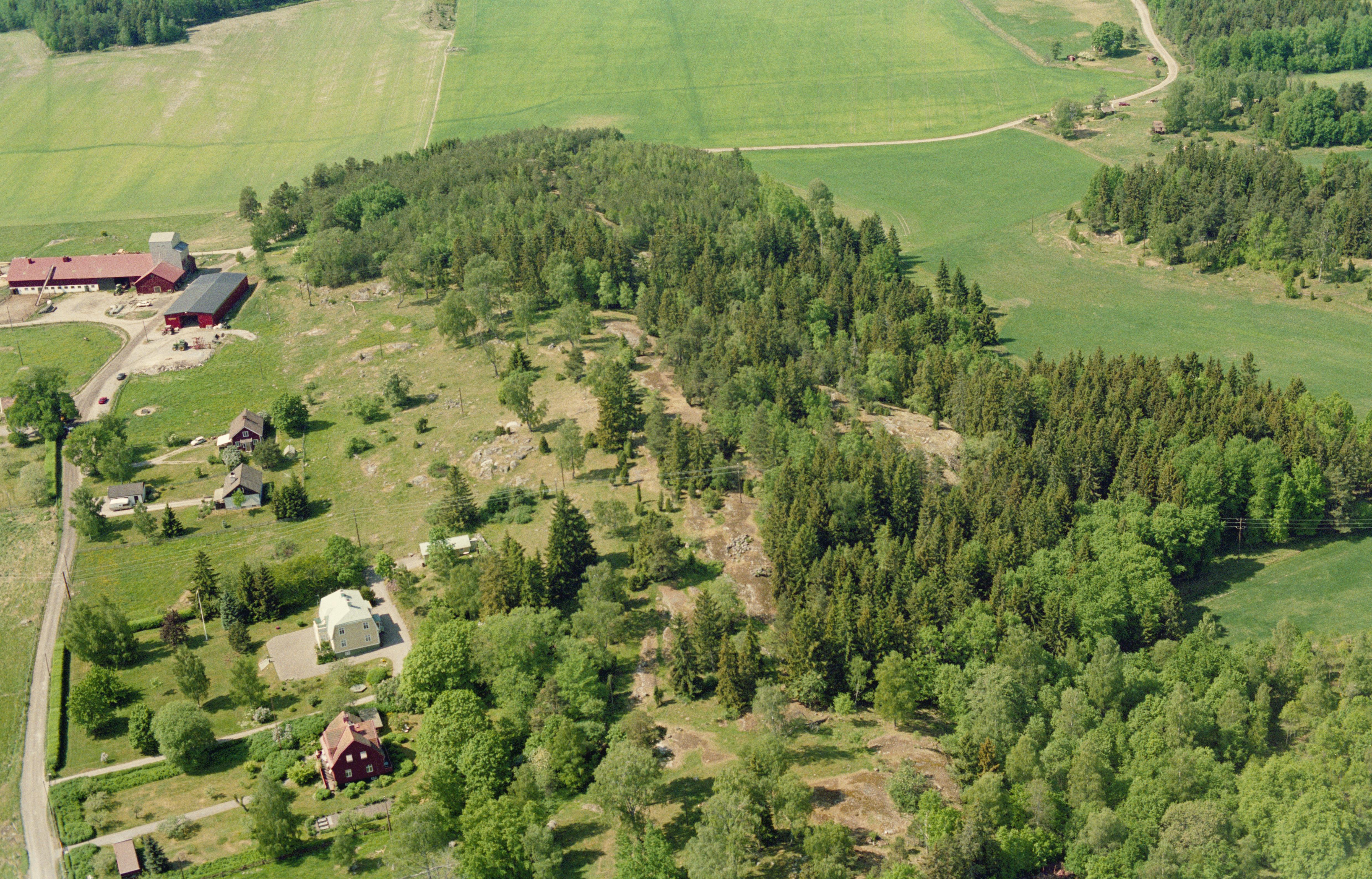 Beskrivning: Vid bildens mitt boplats Hyppinge gamla tomt med runristning, stensättningar RAÄnr Orkesta 25:1, 44:1, 45:1-2, 157 m.fl.. Bilden är tagen mot (väderstreck): VSV