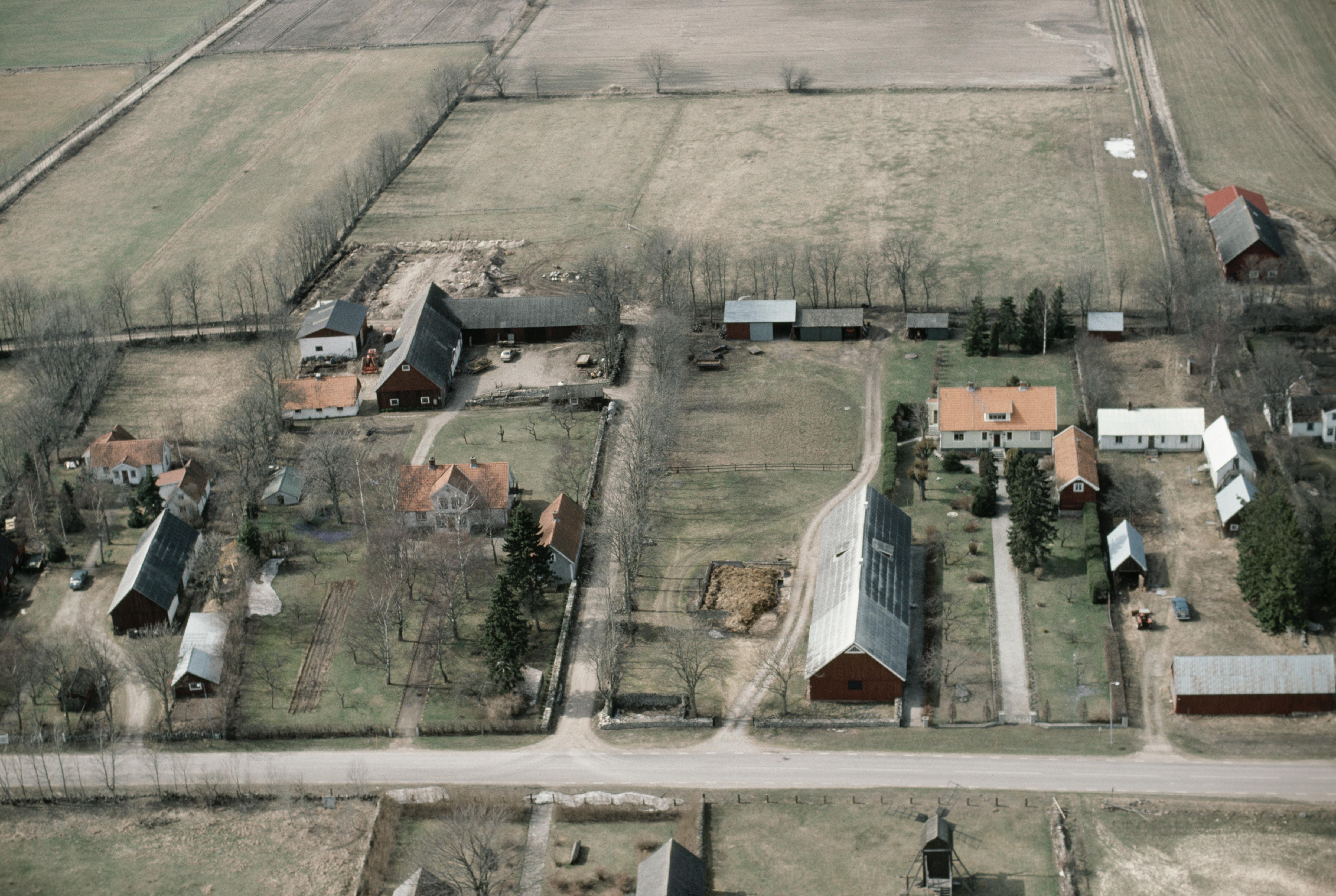 Beskrivning: Bjärby. Vid bildens mitt lämningar efter ett kapell (helgat åt S:ta Margareta) RAÄnr Runsten 160:1. Bilden är tagen mot (väderstreck): VNV