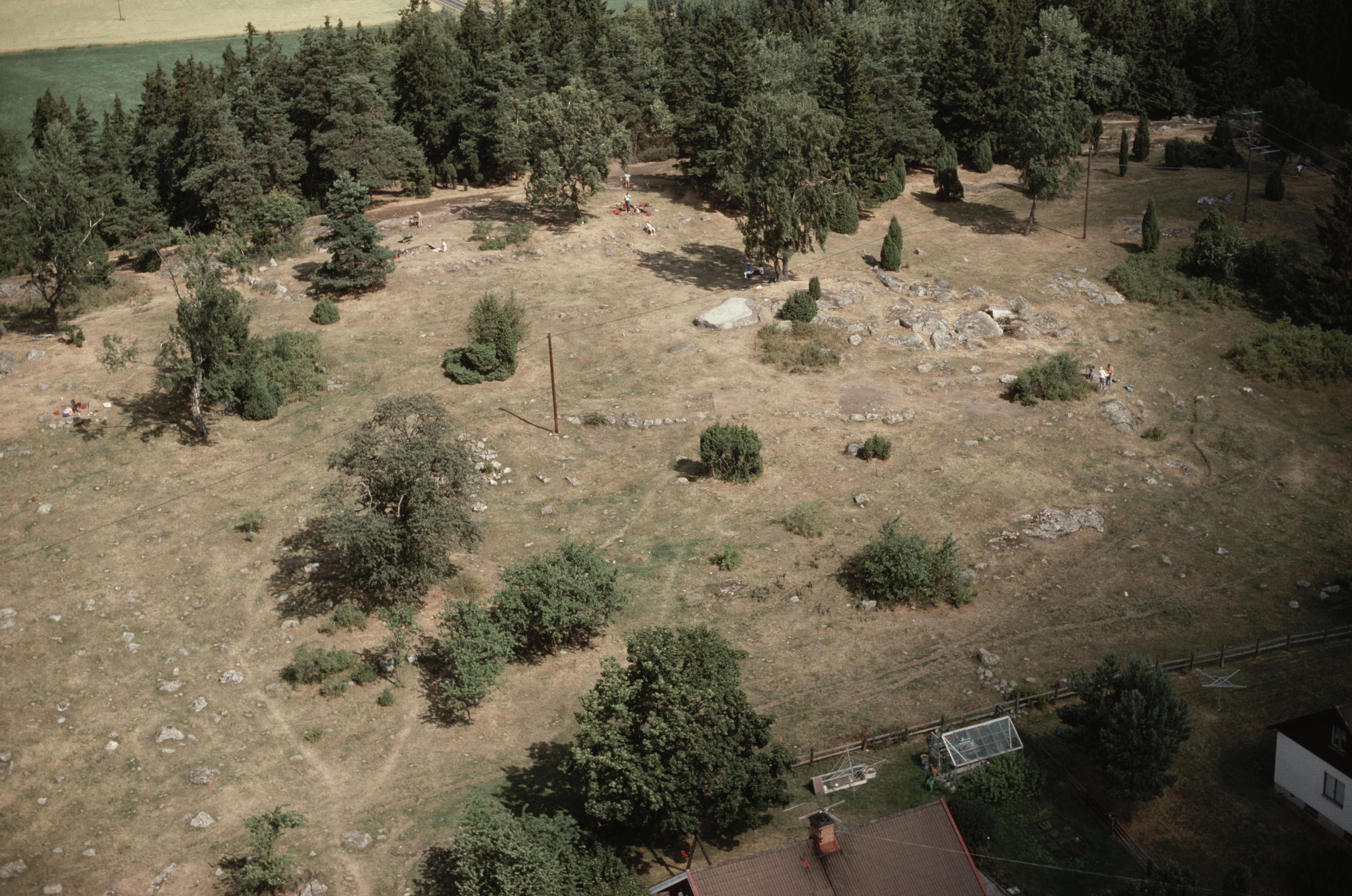 Beskrivning: Arkeologisk undersökning av boplats Hyppinge gamla tomt med runristning, stensättningar RAÄnr Orkesta 25:1, 44:1, 45:1-2, 157 m.fl. Bilden är tagen mot (väderstreck): NO