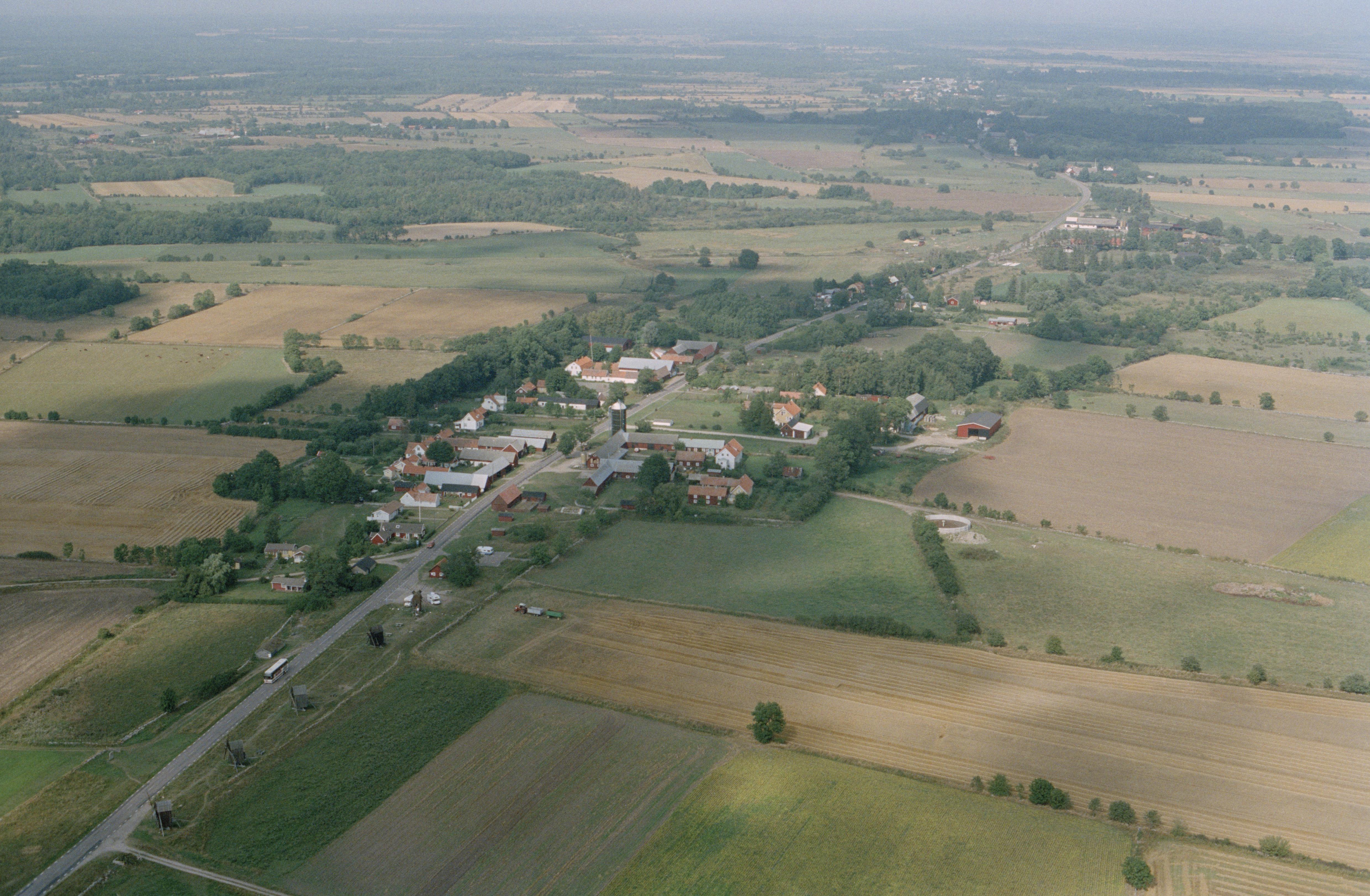 Beskrivning: Lerkaka by. Nere till höger boplats RAÄnr Runsten 222:1. Bilden är tagen mot (väderstreck): N