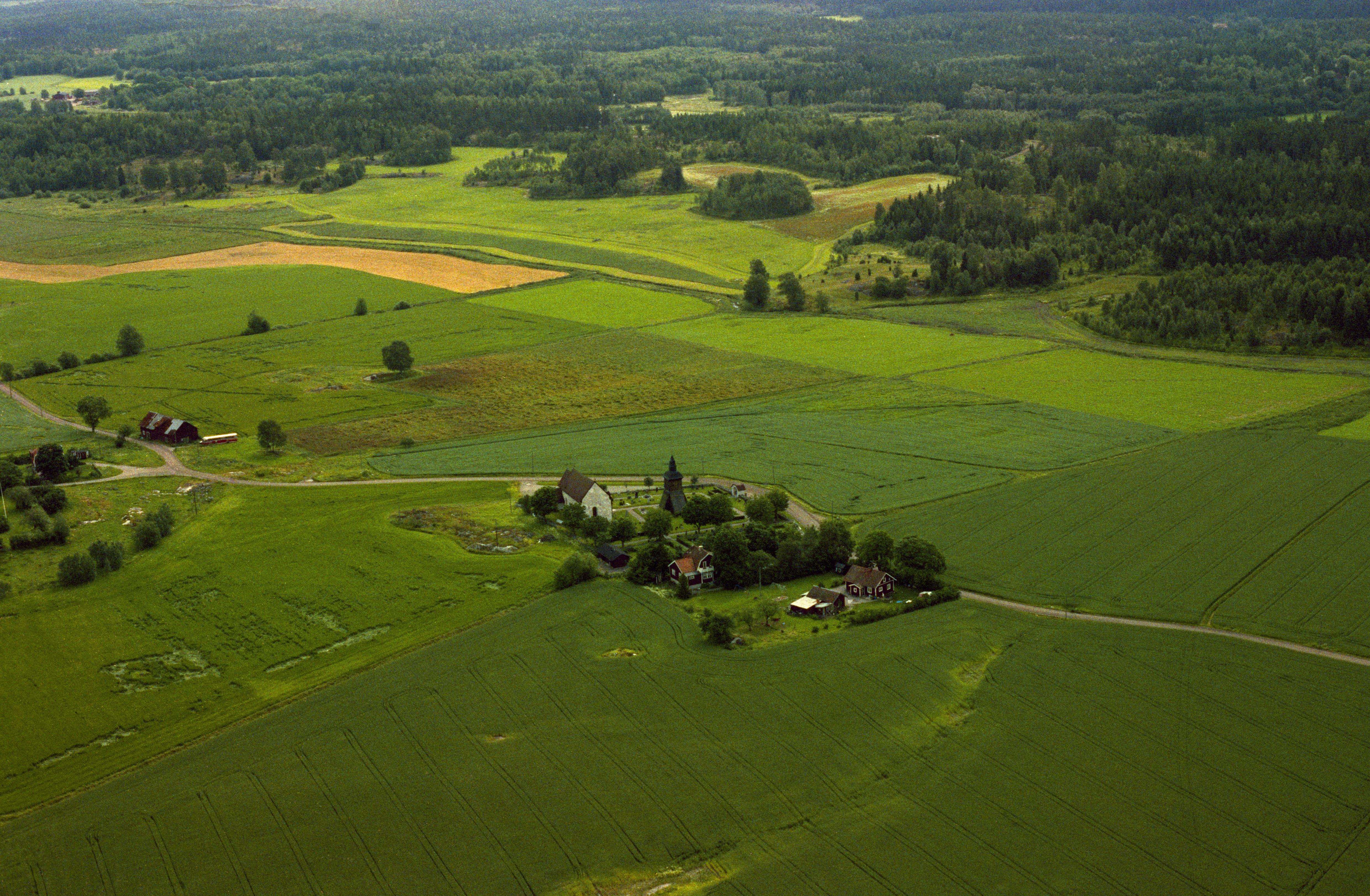 Beskrivning: Orkesta kyrka och kyrkby. Bilden är tagen mot (väderstreck): SO