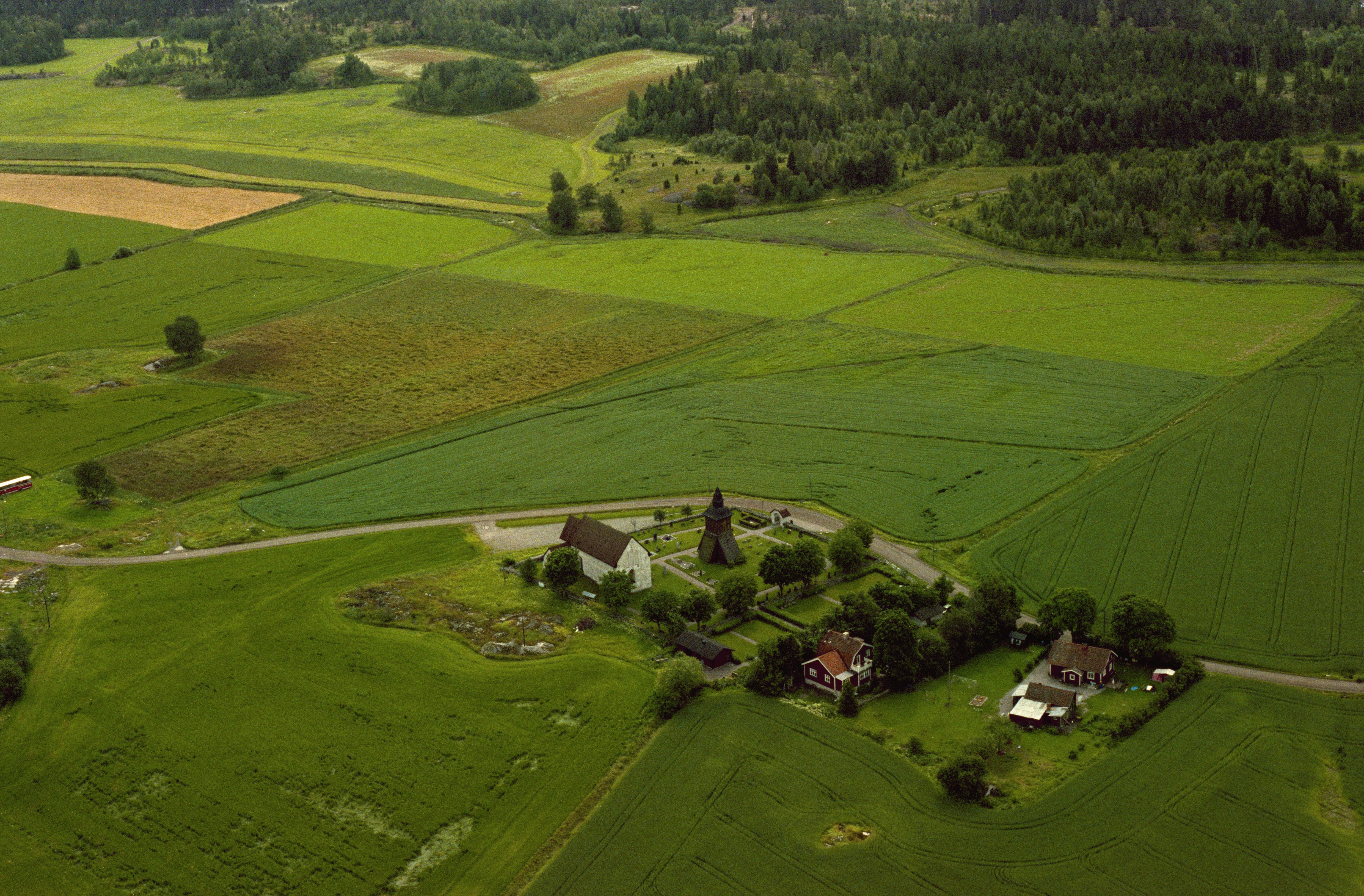 Beskrivning: Orkesta kyrka och kyrkby. Bilden är tagen mot (väderstreck): SO