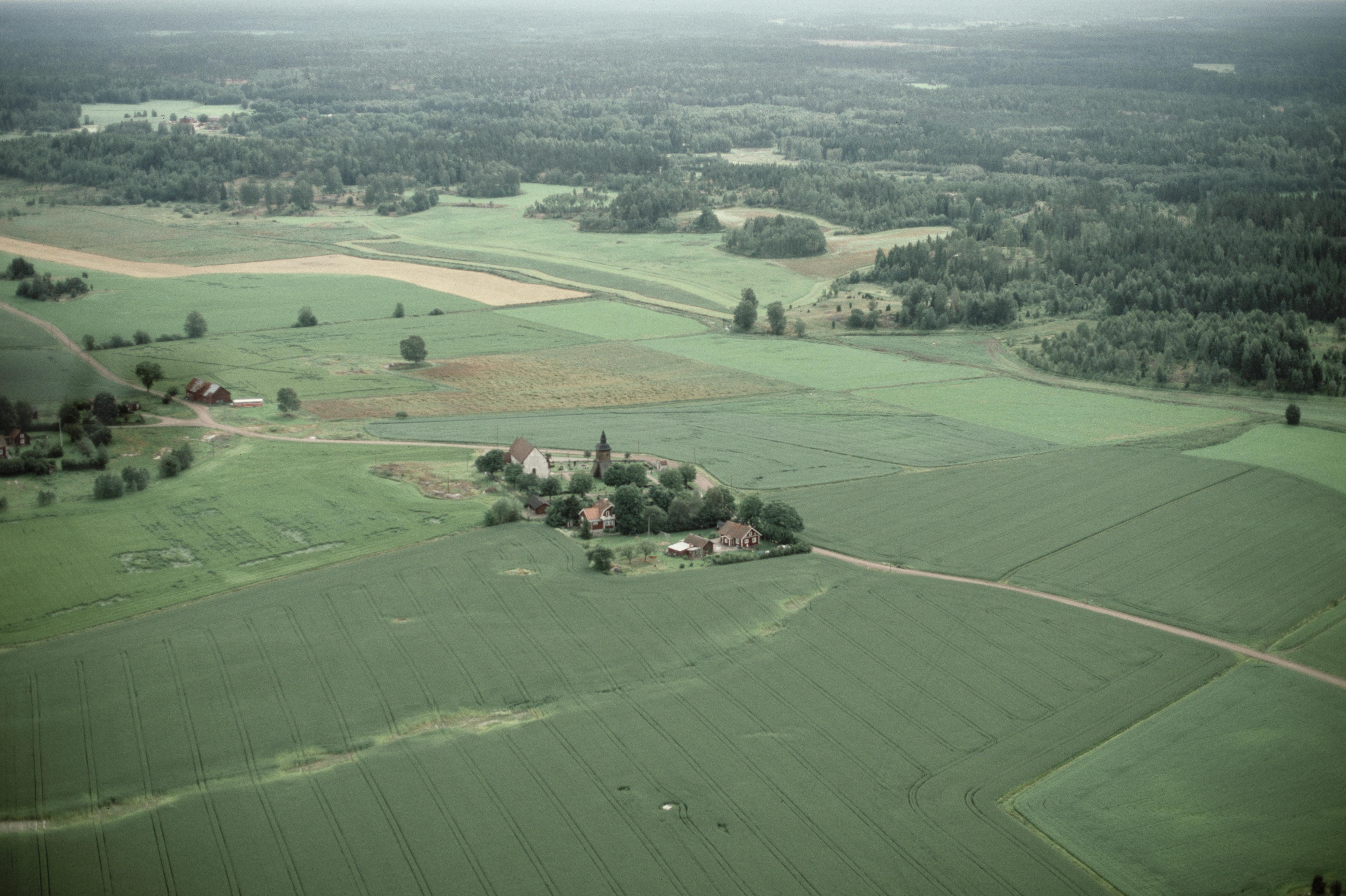 Beskrivning: Orkesta kyrka och kyrkby. Bilden är tagen mot (väderstreck): SO