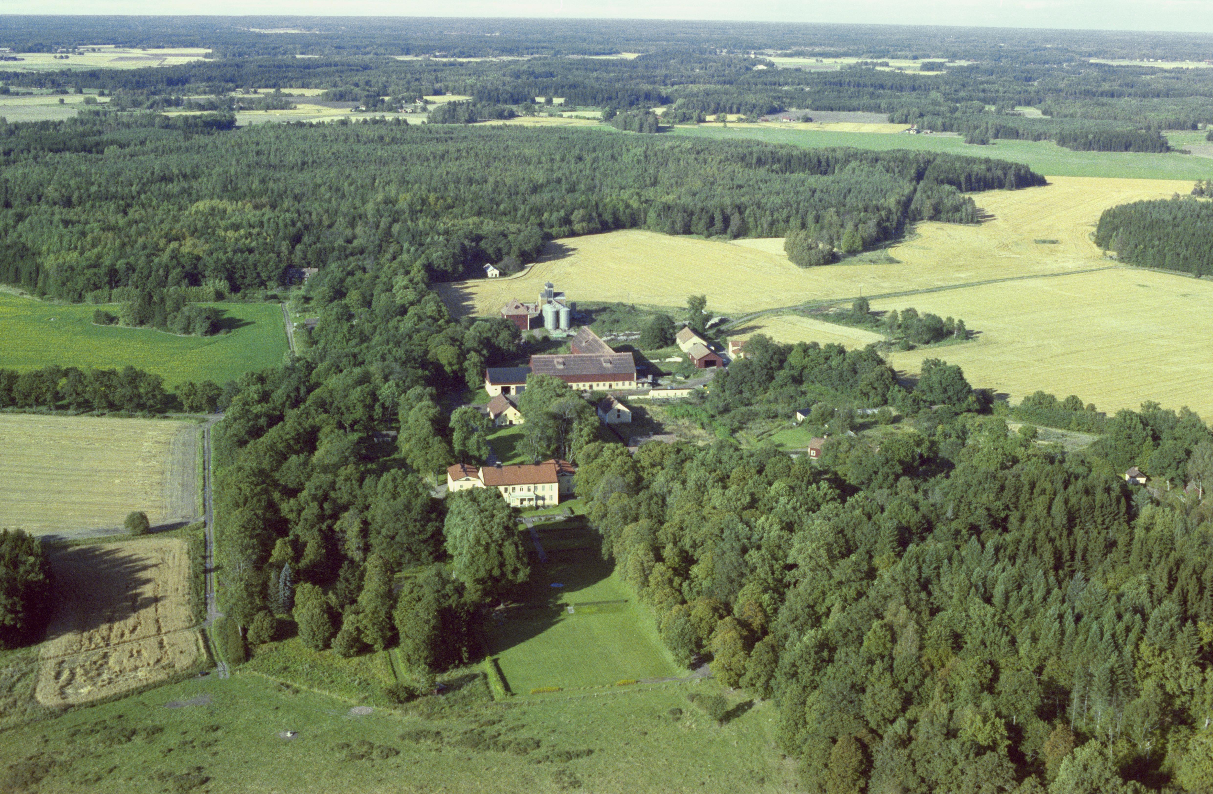Beskrivning: Frötuna herrgård. Nere till vänster område med gravfält RAÄnr Rasbo 457:1. Bilden är tagen mot (väderstreck): N