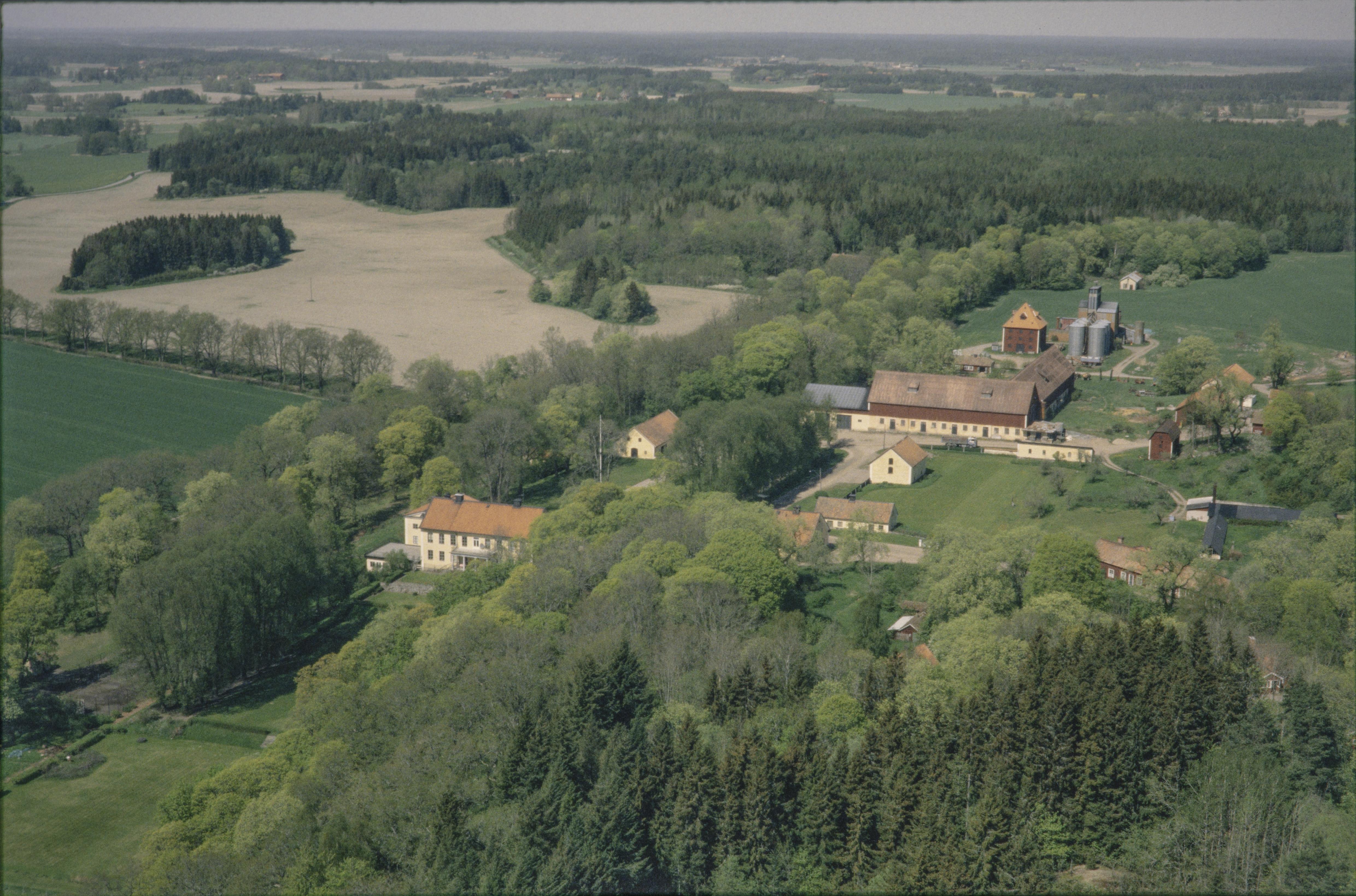 Beskrivning: Frötuna herrgård. Nere till vänster område med gravfält RAÄnr Rasbo 457:1. Bilden är tagen mot (väderstreck): NV