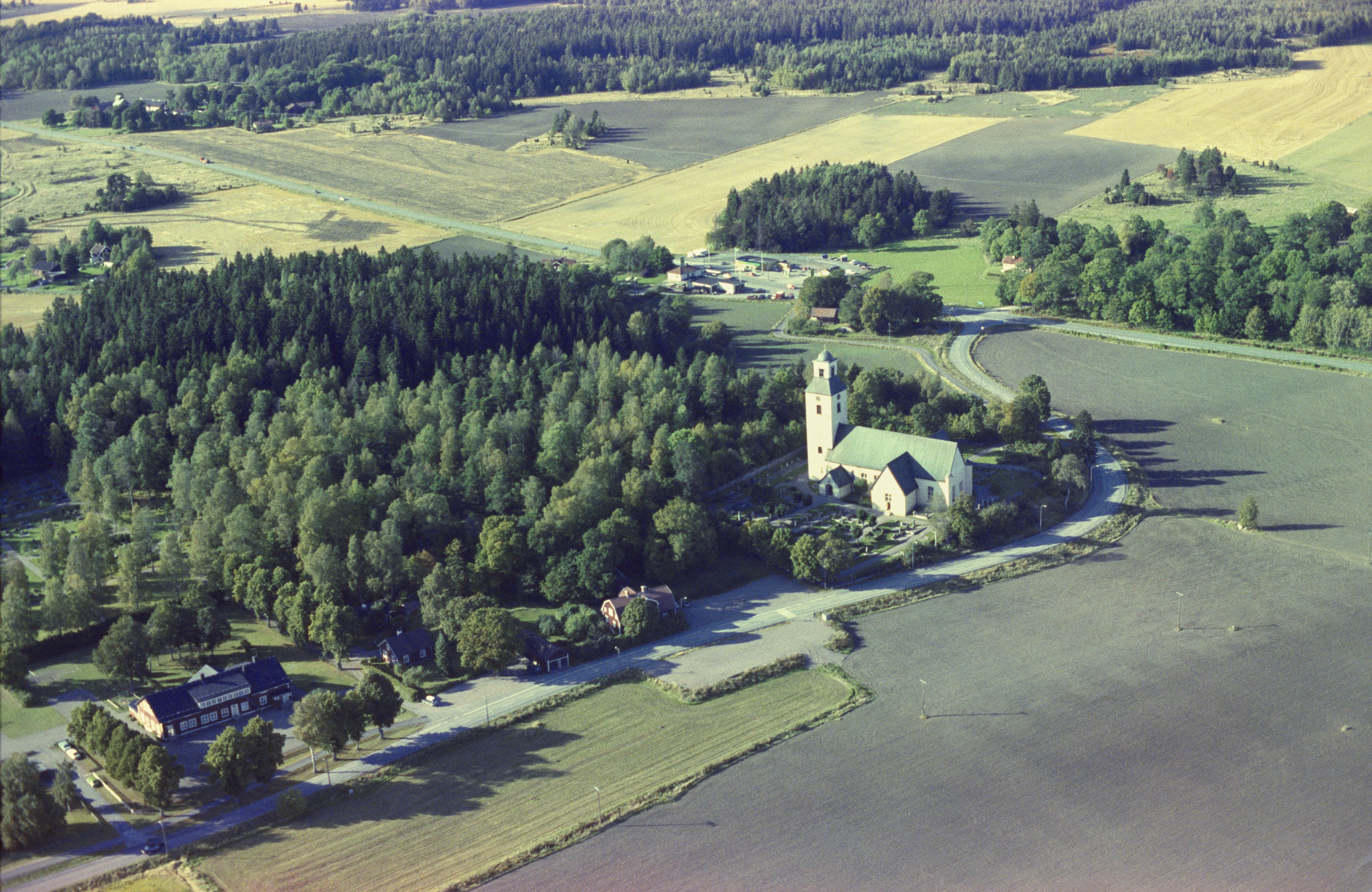 Beskrivning: Rasbo kyrka och kyrkby. Bilden är tagen mot (väderstreck): NV