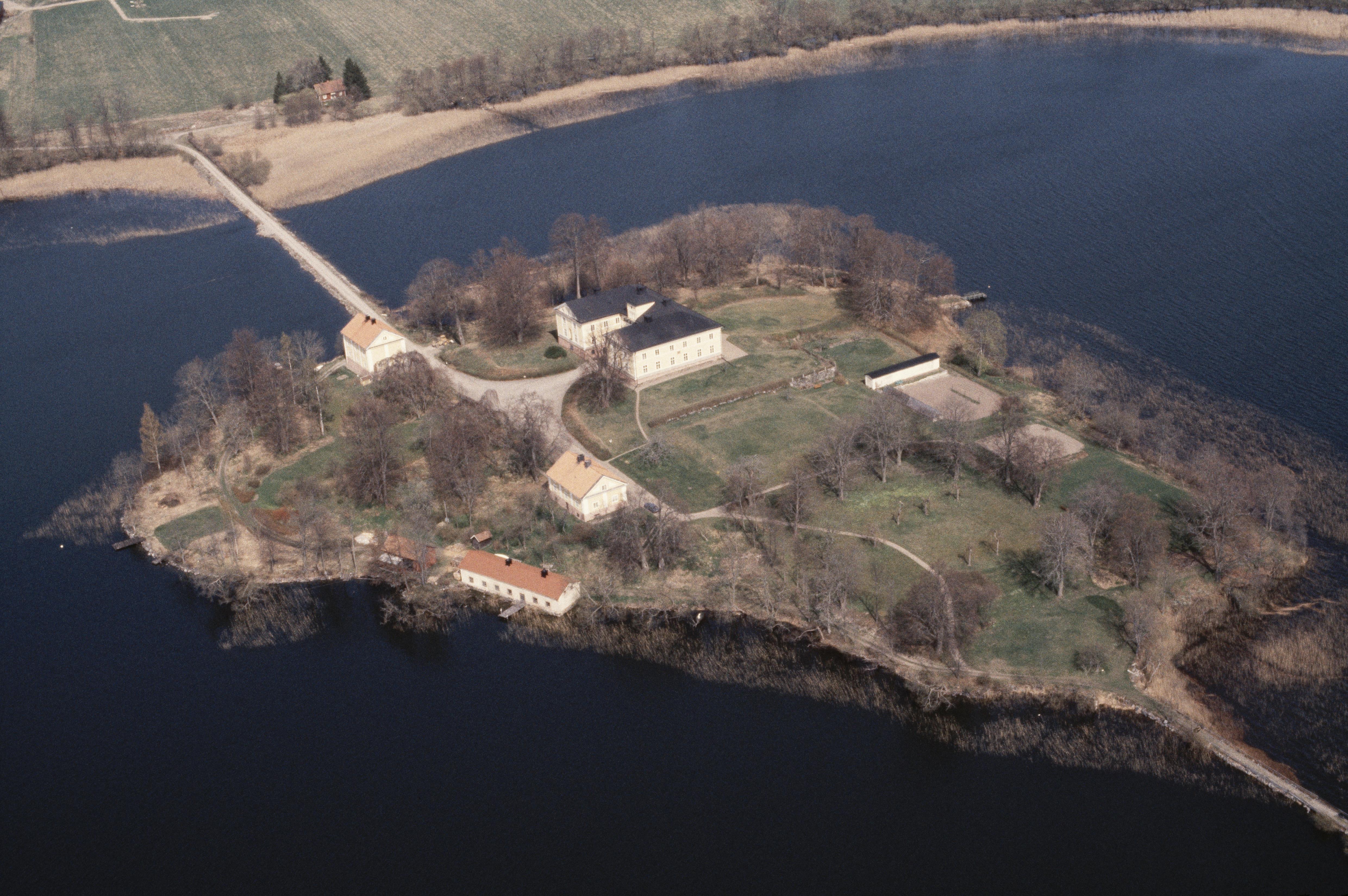Beskrivning: Vibyholms slott RAÄnr Årdala 123:1 vid sjön Båven. Bilden är tagen mot (väderstreck): N
