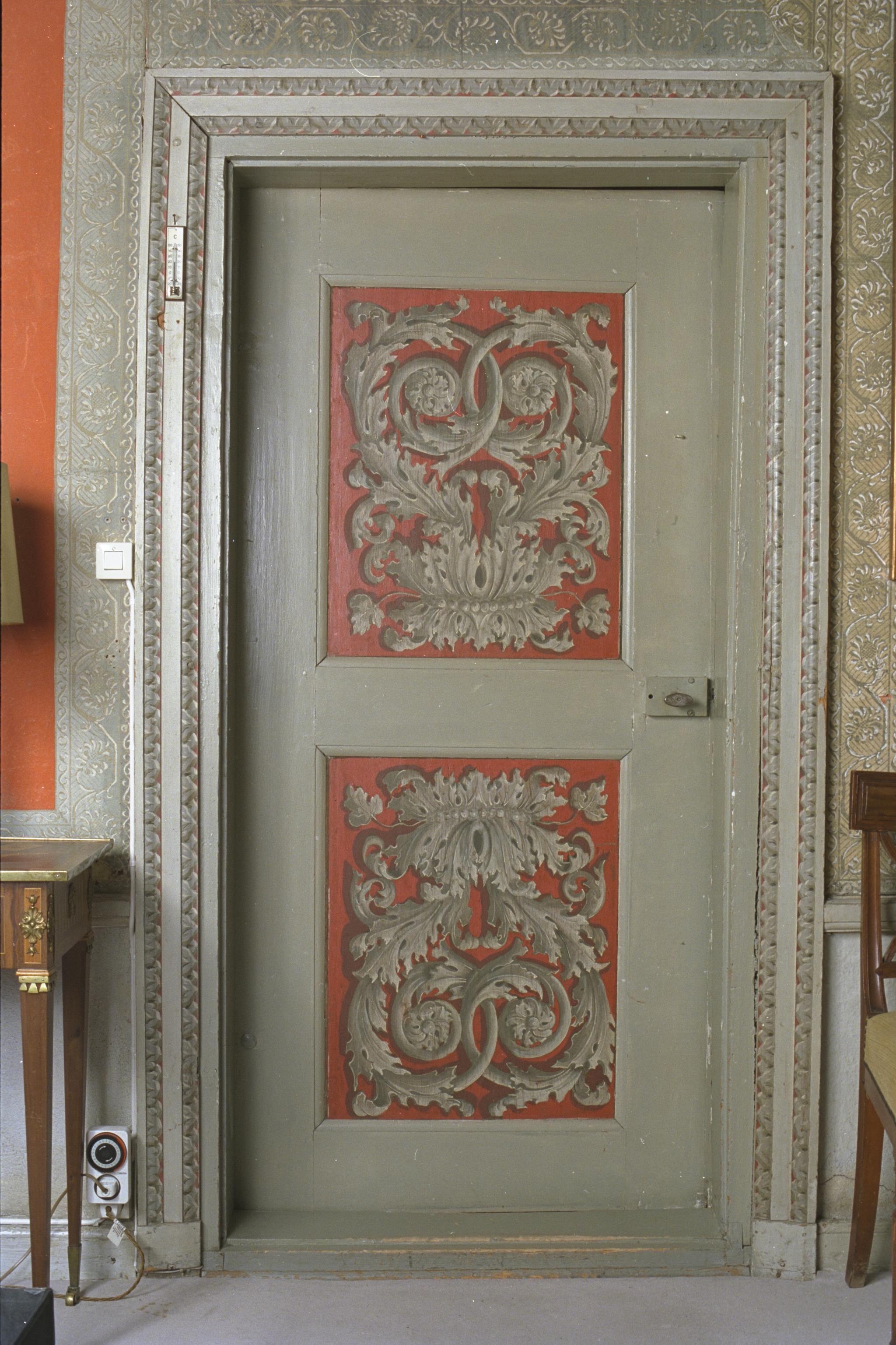 Dörr med grisaillesmålning.