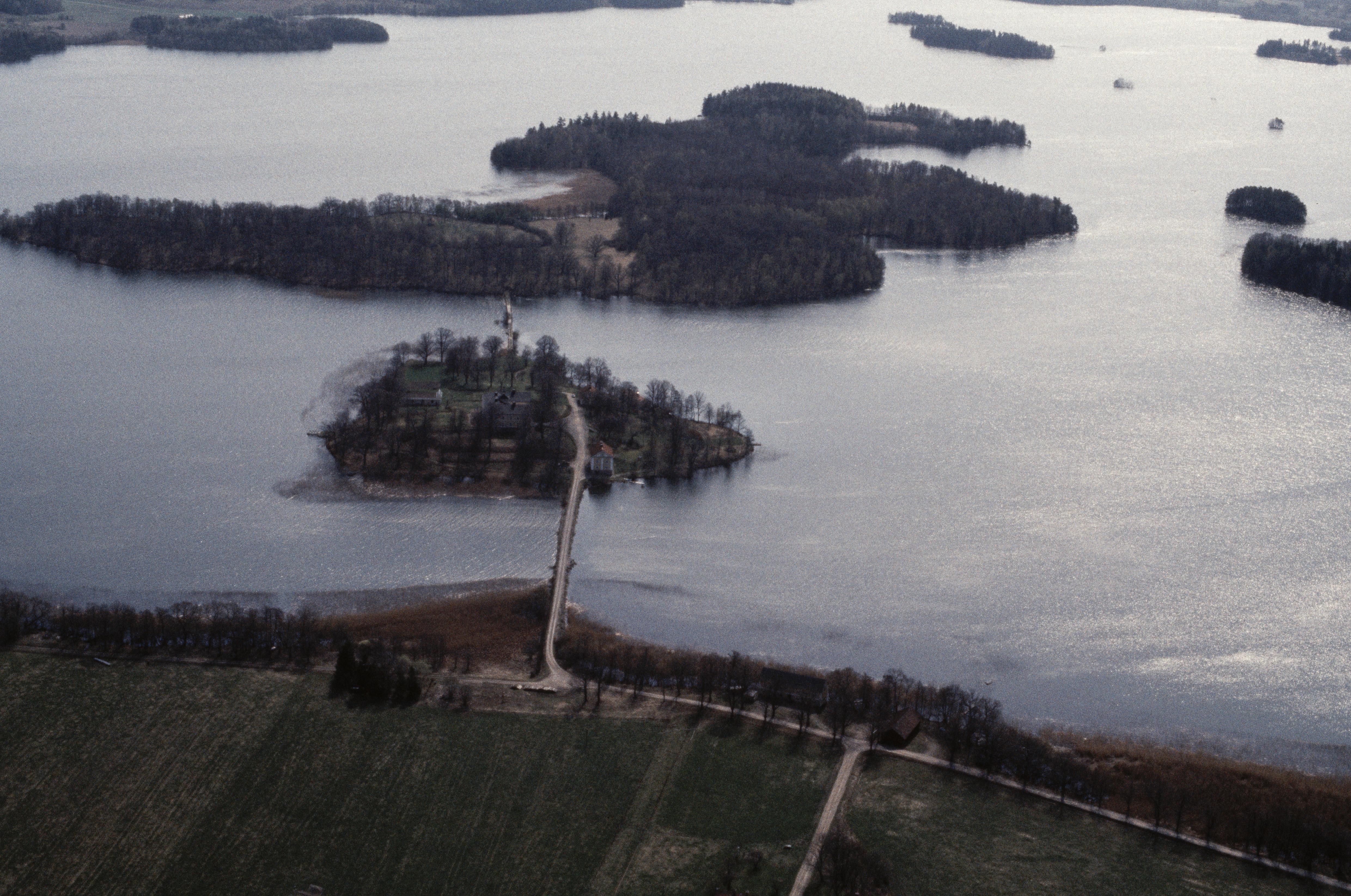 Beskrivning: Vid bildens mitt Vibyholms slott RAÄnr Årdala 123:1 vid sjön Båven. I bildens övre del Djurön. Bilden är tagen mot (väderstreck): SO