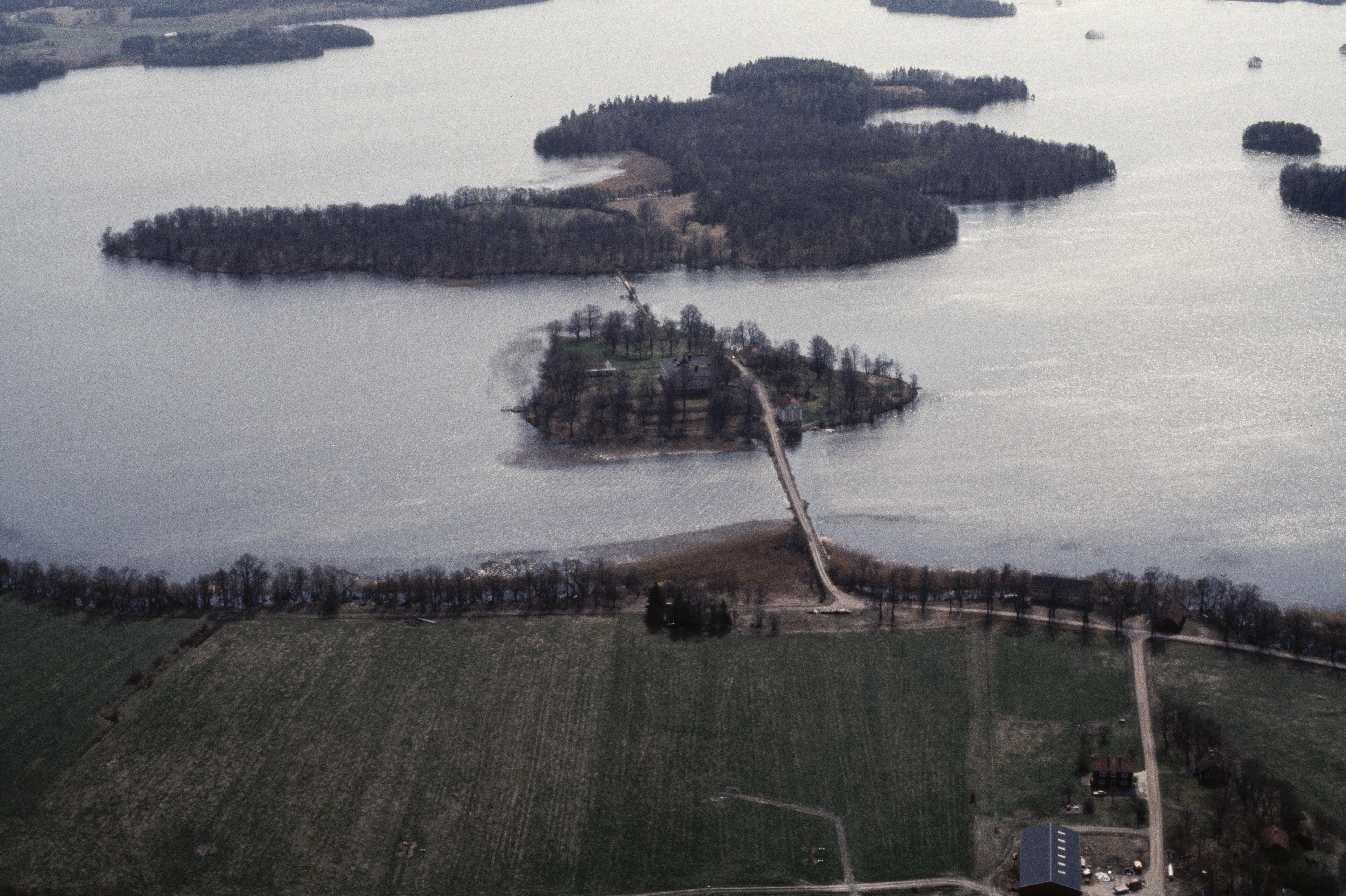 Beskrivning: Vid bildens mitt Vibyholms slott RAÄnr Årdala 123:1 vid sjön Båven. I bildens övre del Djurön. Bilden är tagen mot (väderstreck): SO