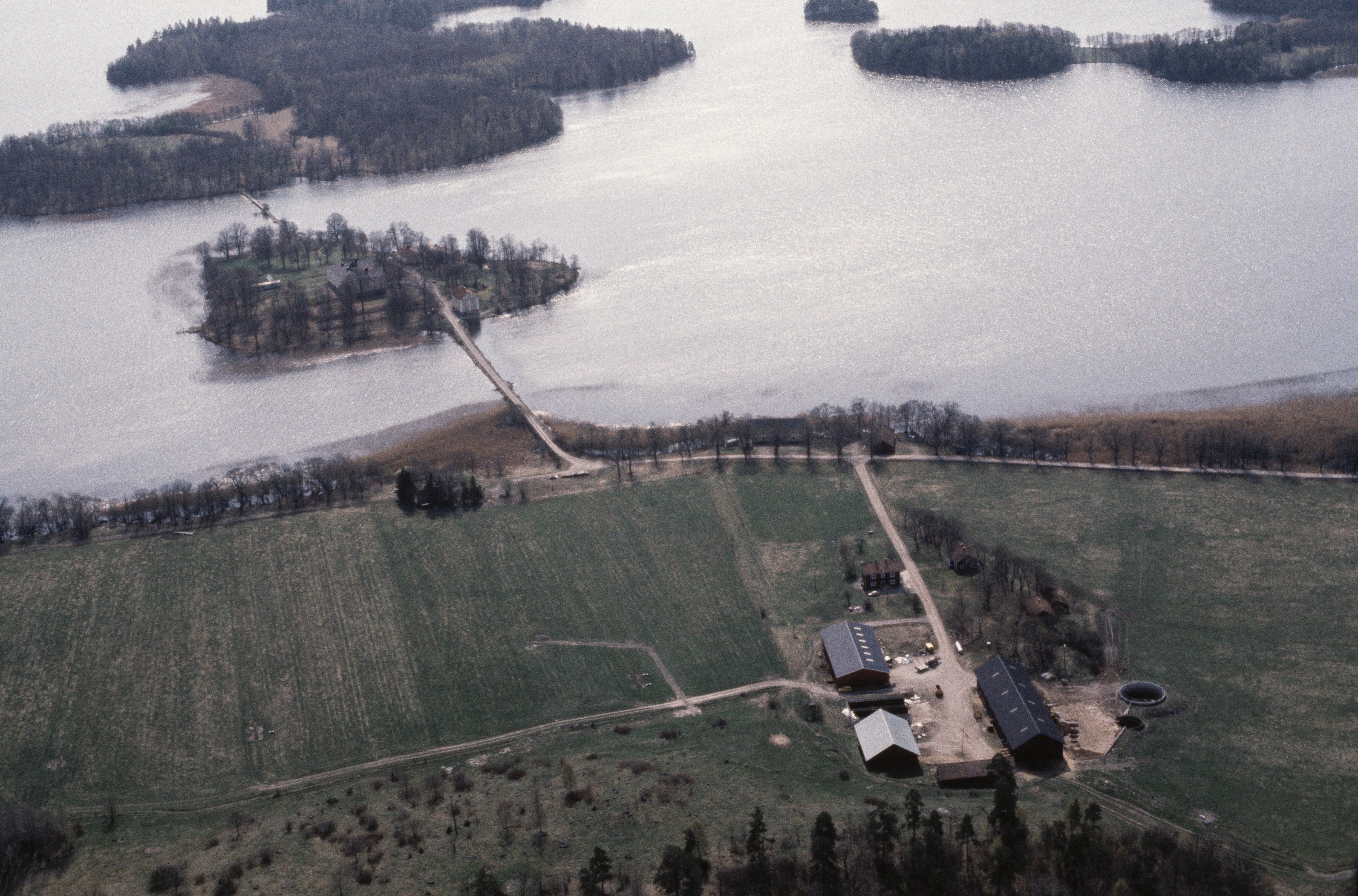 Beskrivning: Vid bildens mitt Vibyholms slott RAÄnr Årdala 123:1 vid sjön Båven. I bildens övre del Djurön. Bilden är tagen mot (väderstreck): SO