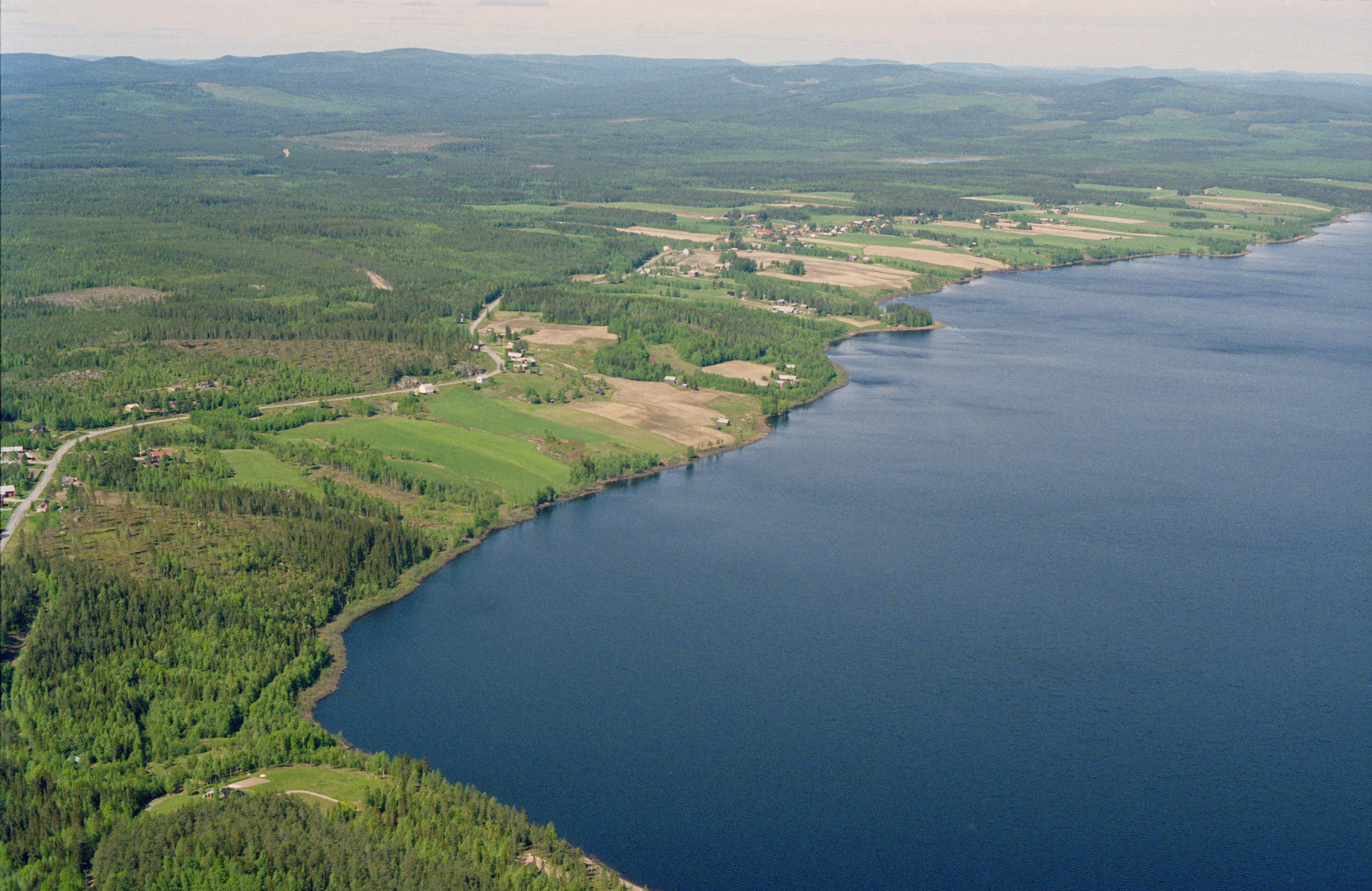 Beskrivning: Örträsks kyrkby runt Örträsksjön. I bildens övre del området Västra Örträsk med fångstgropar RAÄnr Örträsk 34:1, 44:1 m.fl. Bilden är tagen mot (väderstreck): NV