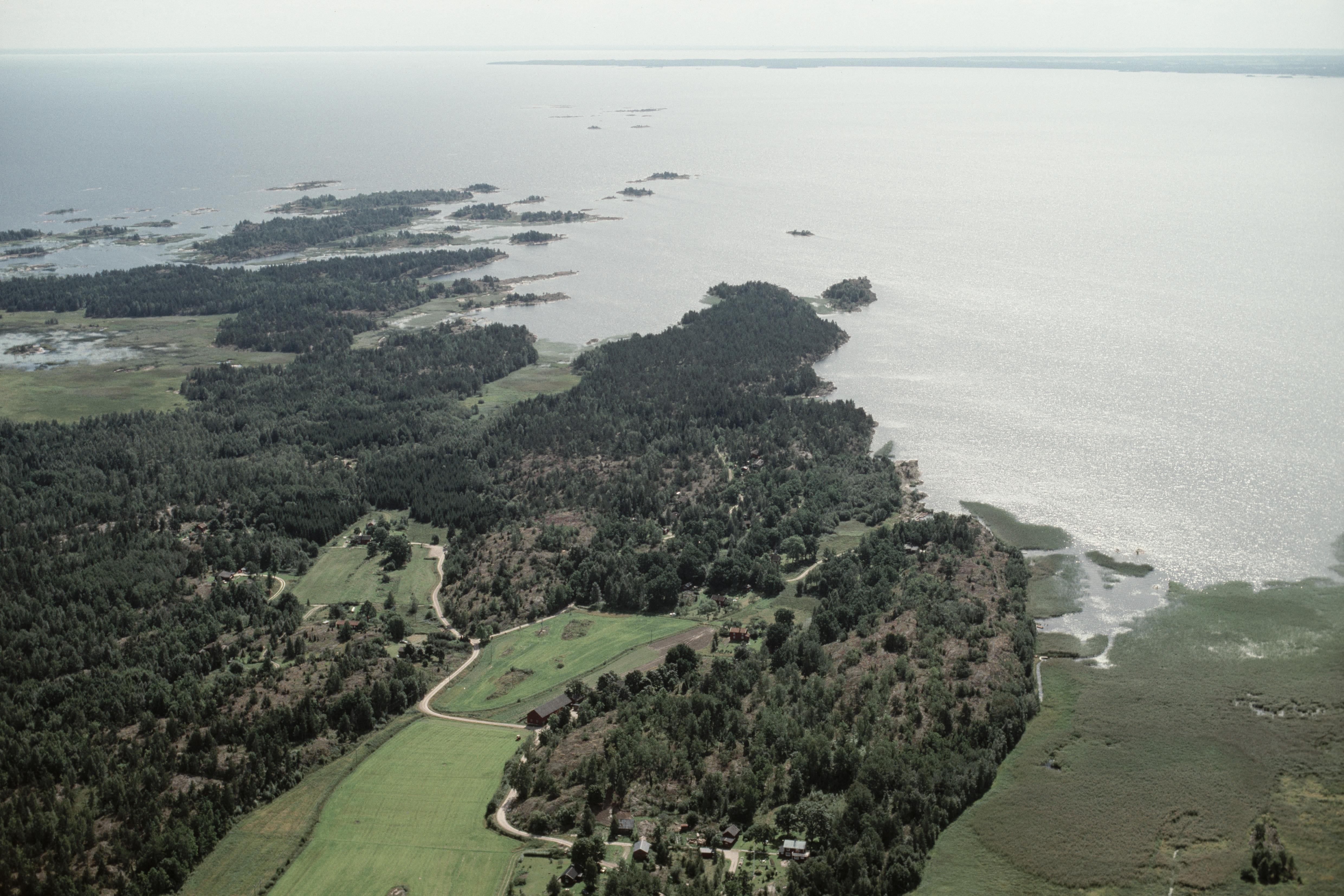 Beskrivning: Anmärkning (övrig): Riksintresse-nr/namn: P1 - Yttre Bodane. Socken: Ånimskog. Motivering: A. Fornlämningsmiljö med bl a ett stort antal spridda bronsåldersrösen, som genom sina lägen i ett bergigt skärgårdsavsnitt intill forntida vattenvägar på Vänerns i stort sett oförändrade vattennivå, har ett ovanligt högt pedagogisk värde. - B. Sjö- och kommunikationshistorisk intressant fyrplatsmiljö. (Kommunikationsmiljö). - Uttryck för riksintresset: A. 26 rösen, 2 stensättningar, 1 hällkista i röse. - B. Gåsöns fyr och fyrvaktarboställe, i drift från 1860 till 1940. [Texten uppdaterat av Riksantikvarieämbetet våren 2013.] Beskrivning: Sjön Vänern, västra delen, söder om byn Ånimskog. Vid bildens mitt Ekekullen med hällristning RAÄnr Ånimskog 34:1 vid Yttre Bodane gård. Bilden är tagen mot (väderstreck): SO Fotosyfte: Flygbildsdokumentation