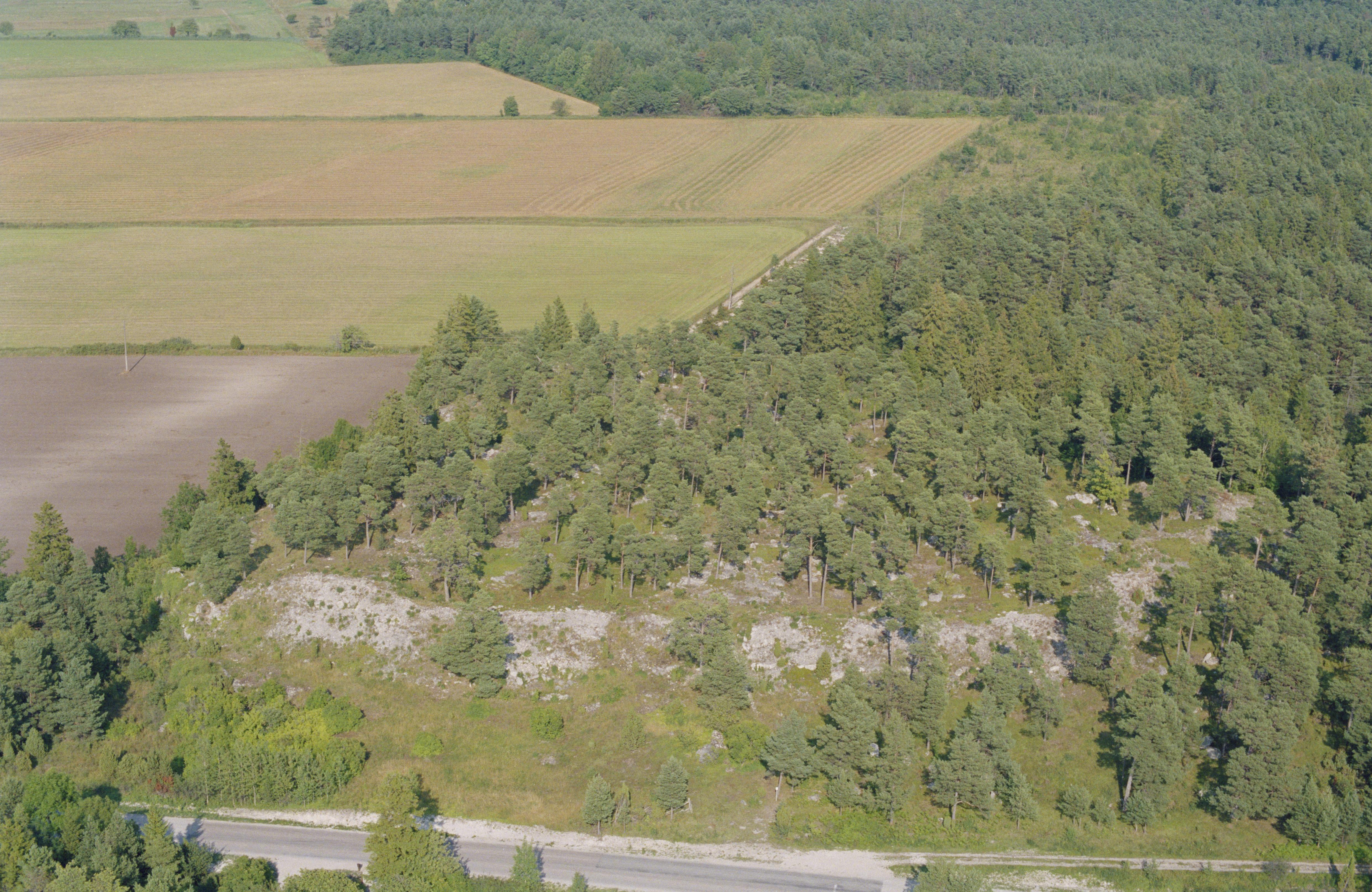 Beskrivning: Anmärkning (övrig): Riksintresse-nr/namn: I50 - Lickershamn. Socken: Stenkyrka. Motivering: Kust- och hamnmiljö med förhistorisk kontinuitet med talrika fornlämningsmiljöer, bla strategiskt belägna fornborgar på klintarna. (Kustmiljö, gårdsmiljö). - Uttryck för riksintresset: Stenålders- och bronsåldersboplatser, järnåldersgravfält samt tre fornborgar. Bebyggelse med anknytning till fiske. Kvarnmiljö från 1700-talet. Gårdsbebyggelse och kvarn från 1800-talet. [Texten uppdaterat av Riksantikvarieämbetet våren 2013.] Beskrivning: Området Grausne, sydost om fiskeläget Lickershamn. Till höger om bildens mitt fornborg RAÄnr Stenkyrka 22:1 vid färdväg Stenkyrka 250 (i bildens nedre kant). Bilden är tagen mot (väderstreck): Ö Fotosyfte: Flygbildsdokumentation
