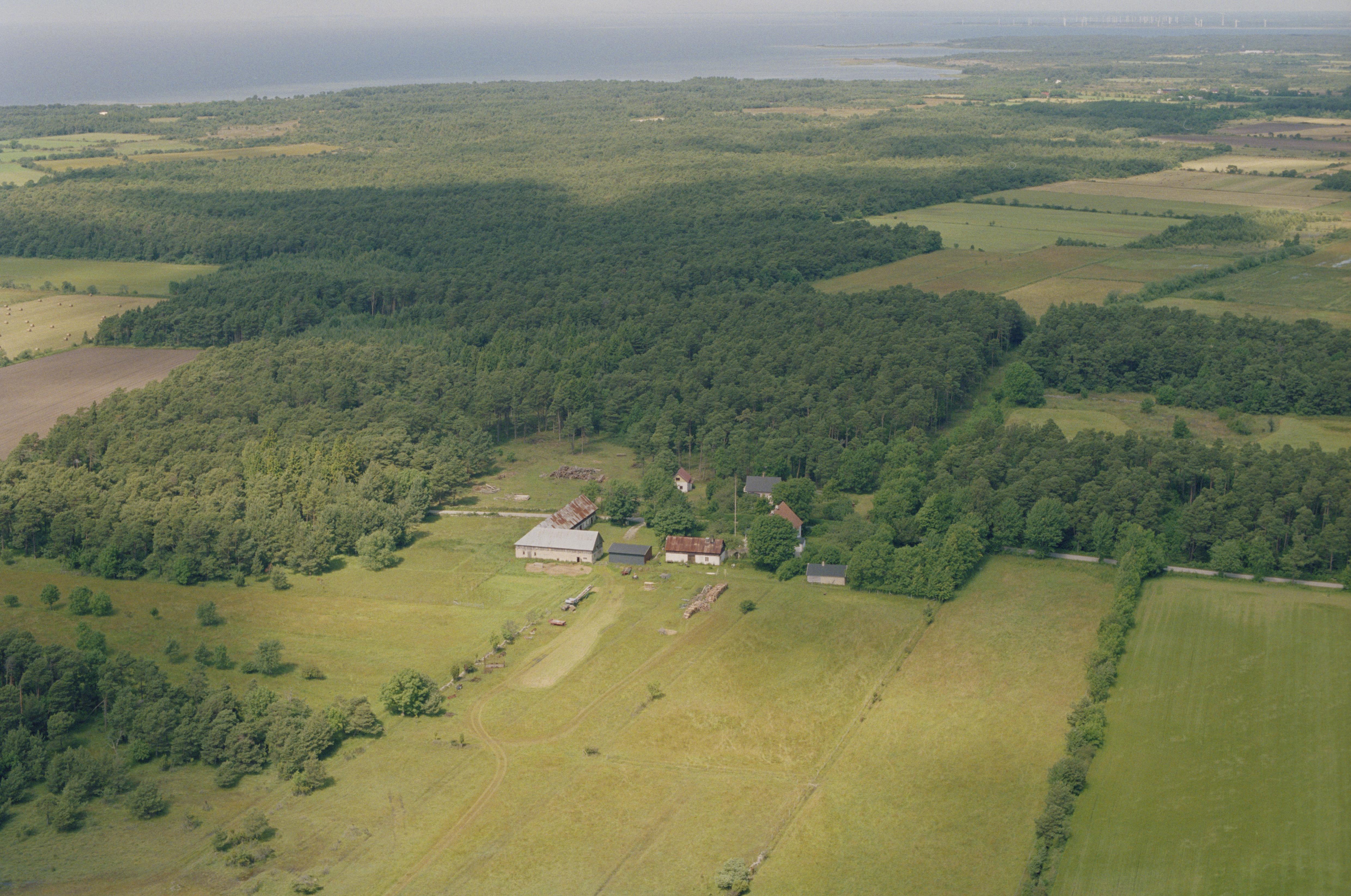 Beskrivning: Gervalds gård i östra delen av Gervalds by. I bildens nedre kant område med bytomt RAÄnr Vamlingbo 225 (ej i bilden). I bildens övre kant Näsudden i Näs socken. Bilden är tagen mot (väderstreck): NNV