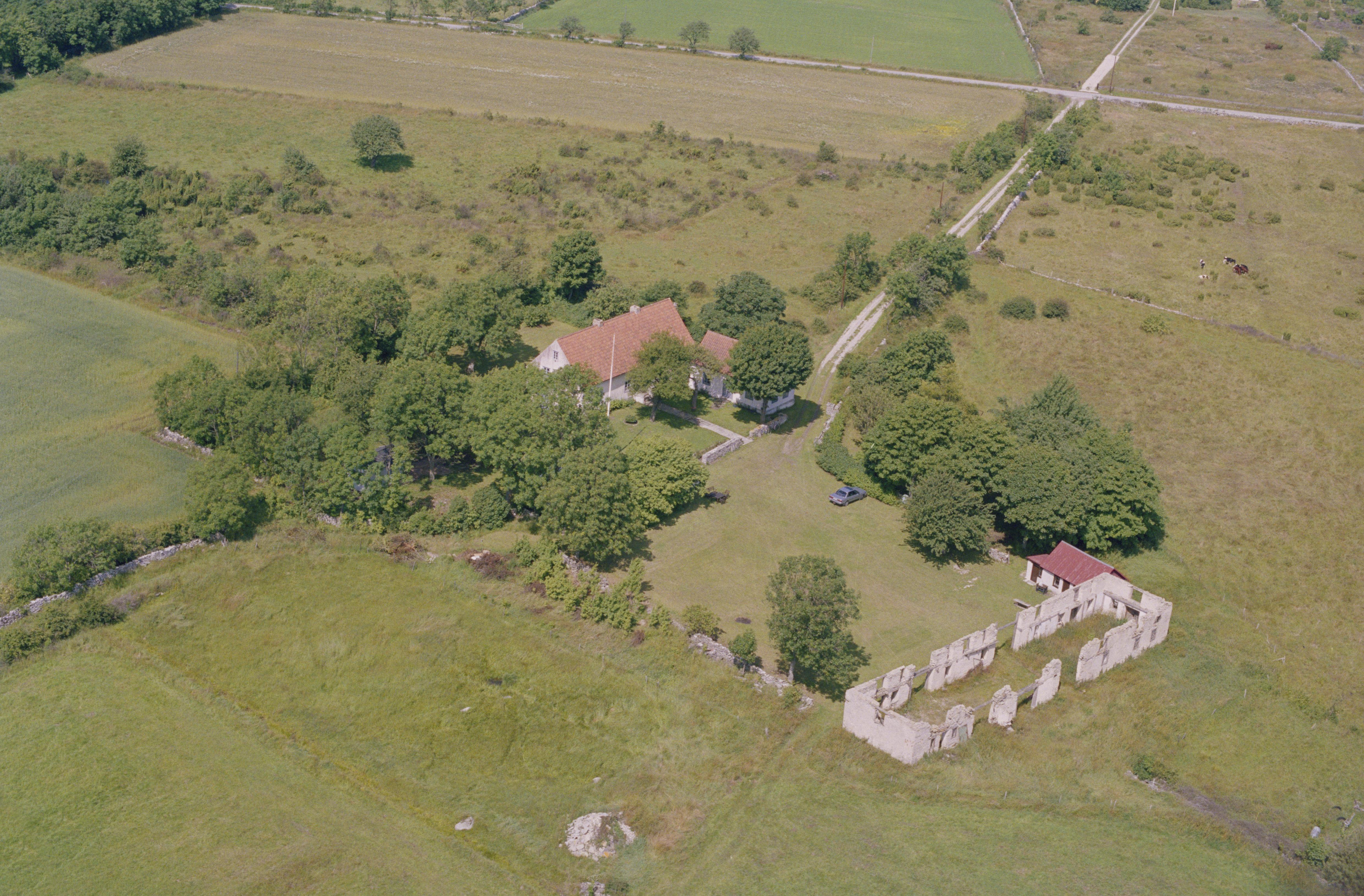 Beskrivning: Området Sippmanne i Gervalds by. I bildens nedre del Sippmanne medeltida husgrund (med delvis bevarade murar) RAÄnr Vamlingbo 63:1. Bilden är tagen mot (väderstreck): N