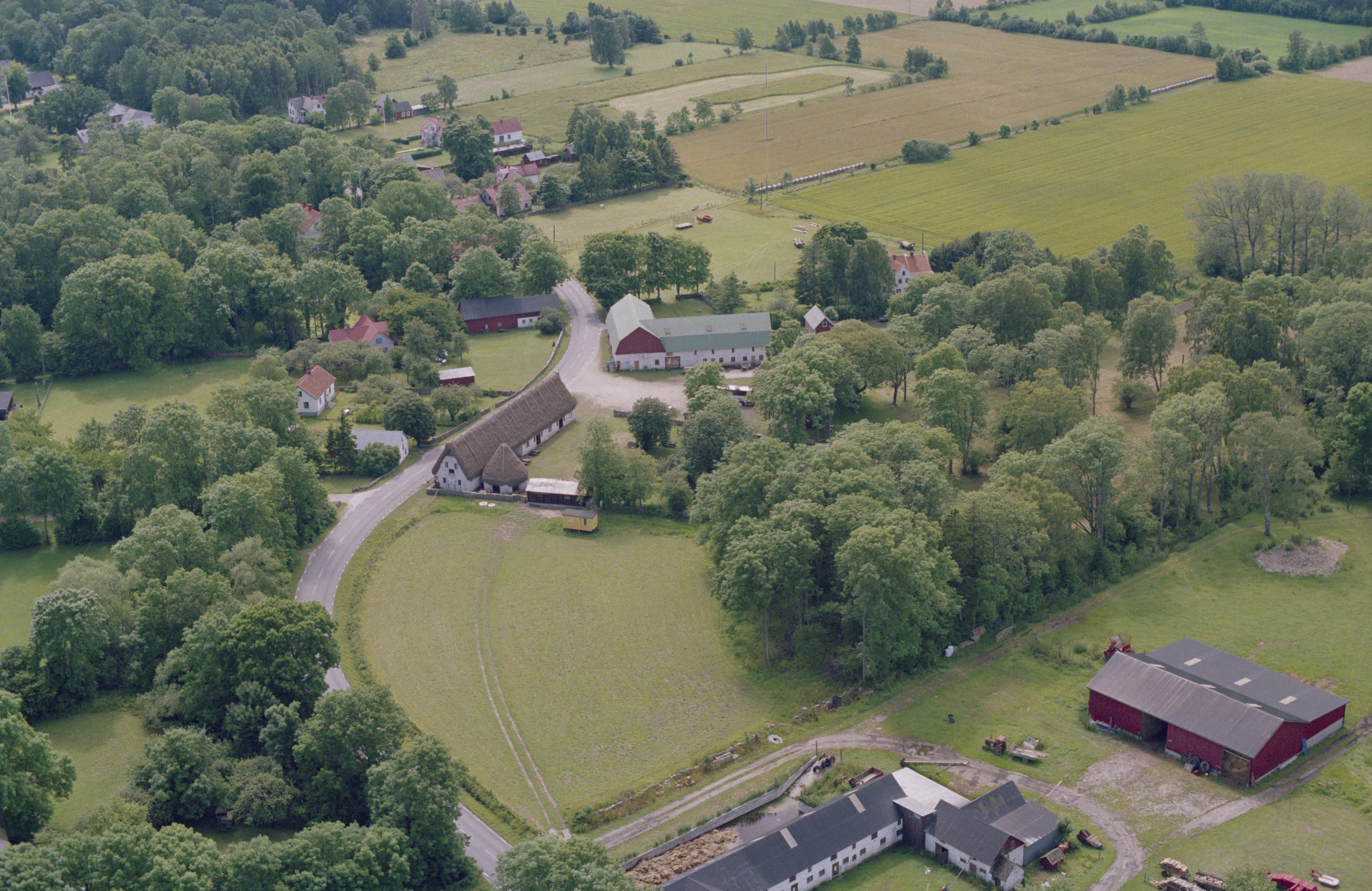 Beskrivning: Byggnadsminne och museum Bottarvegården RAÄnr Vamlingbo 124:1 vid bildens mitt. Bilden är tagen mot (väderstreck): SSV