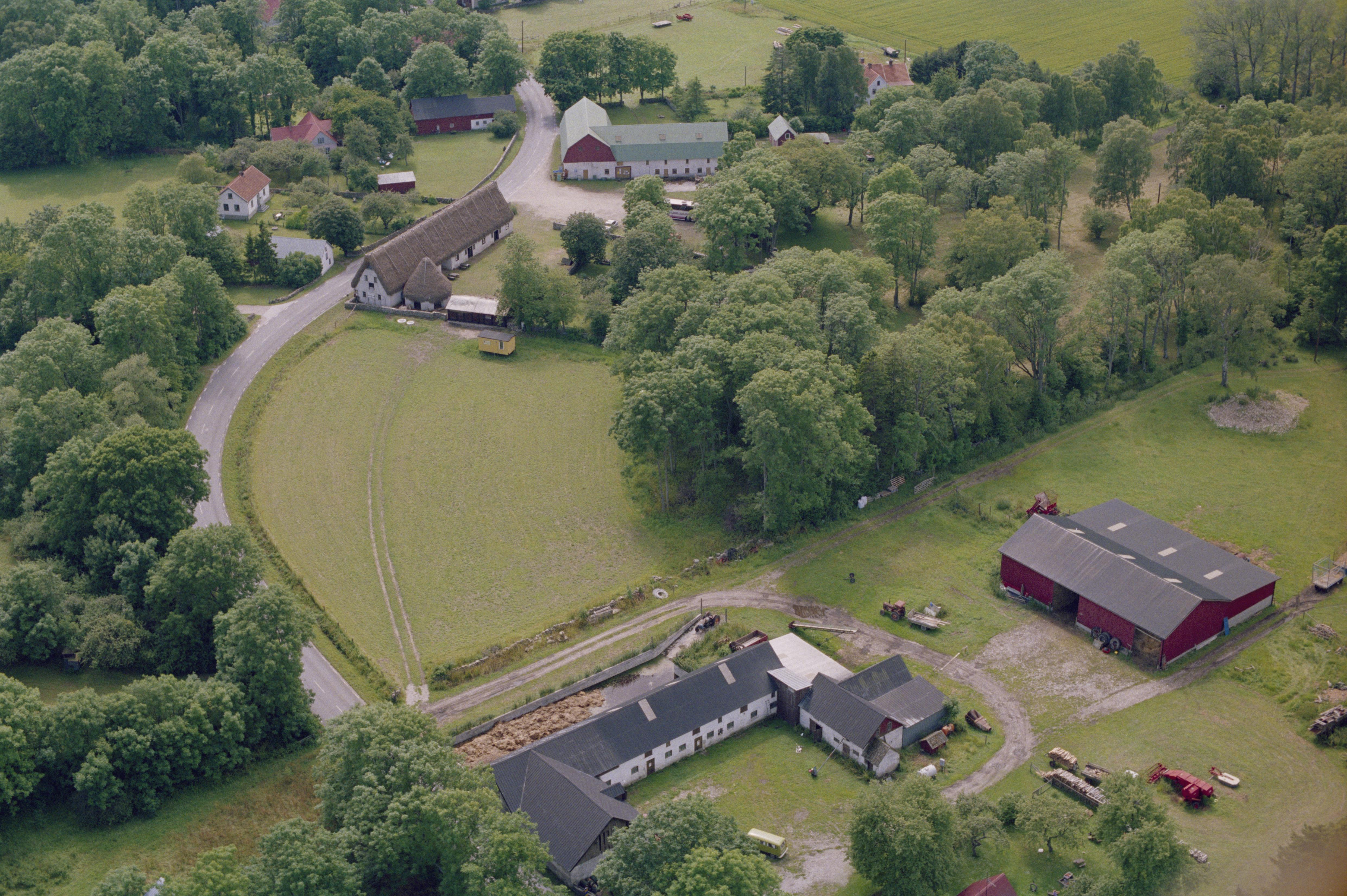 Beskrivning: Byggnadsminne och museum Bottarvegården RAÄnr Vamlingbo 124:1 i bildens övre del. Bilden är tagen mot (väderstreck): SSV