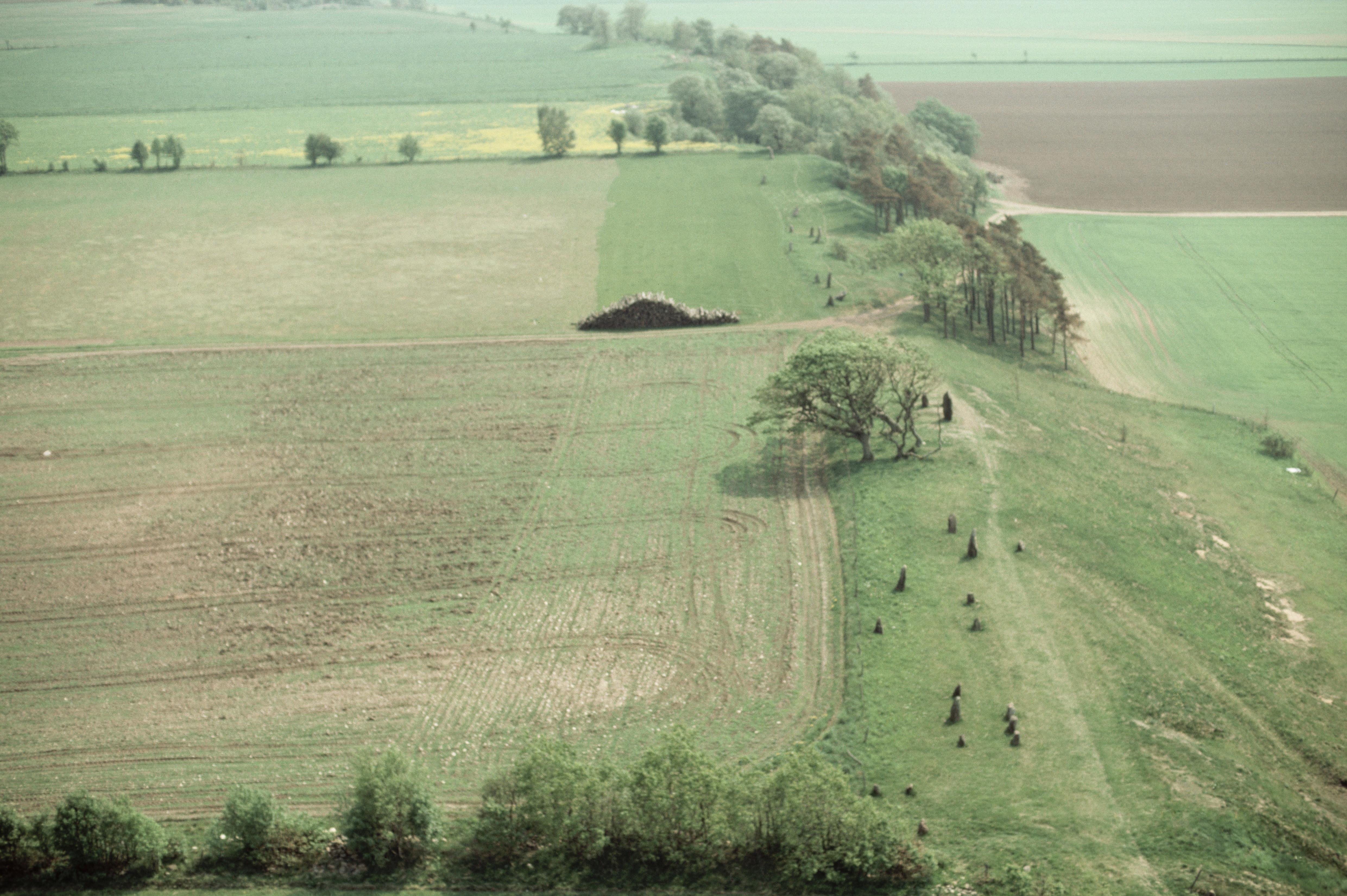 Beskrivning: Gravfält "Örelids stenar" RAÄnr Tjärby 37:1, hög Tjärby 16:1 och Tjärby 17:1 m.fl. Bilden är tagen mot (väderstreck): S