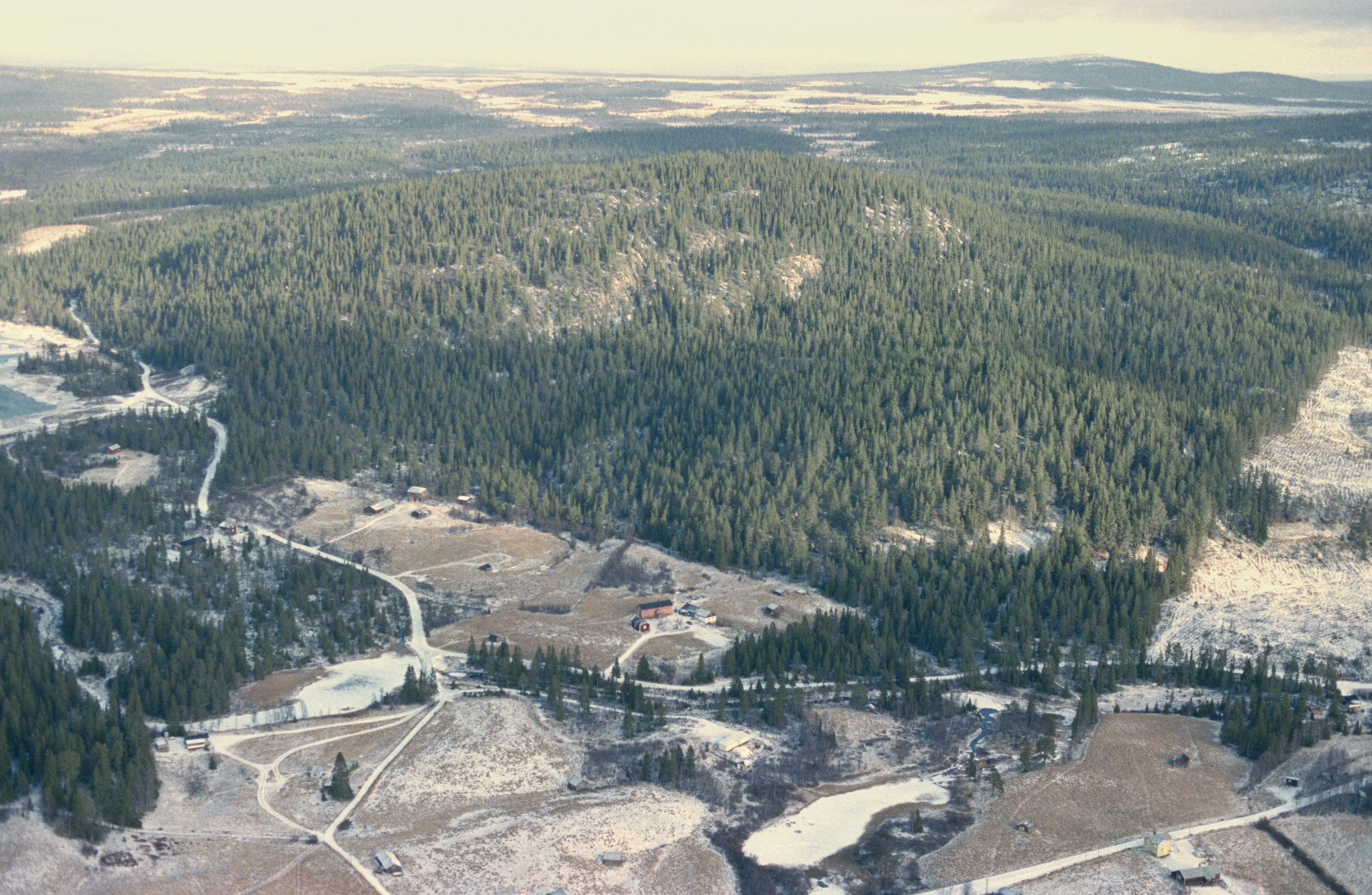Beskrivning: Beskrivning: Grannbergets by i bildens nedre del. Grannberget med hällmålning RAÄnr Hede 201:1 vid bildens mitt. Uppe till vänster Över-Särvsjön med boplats RAÄnr Hede 258:1-4 m.fl. Bilden är tagen mot (väderstreck): NNO Fotosyfte: Flygbildsdokumentation