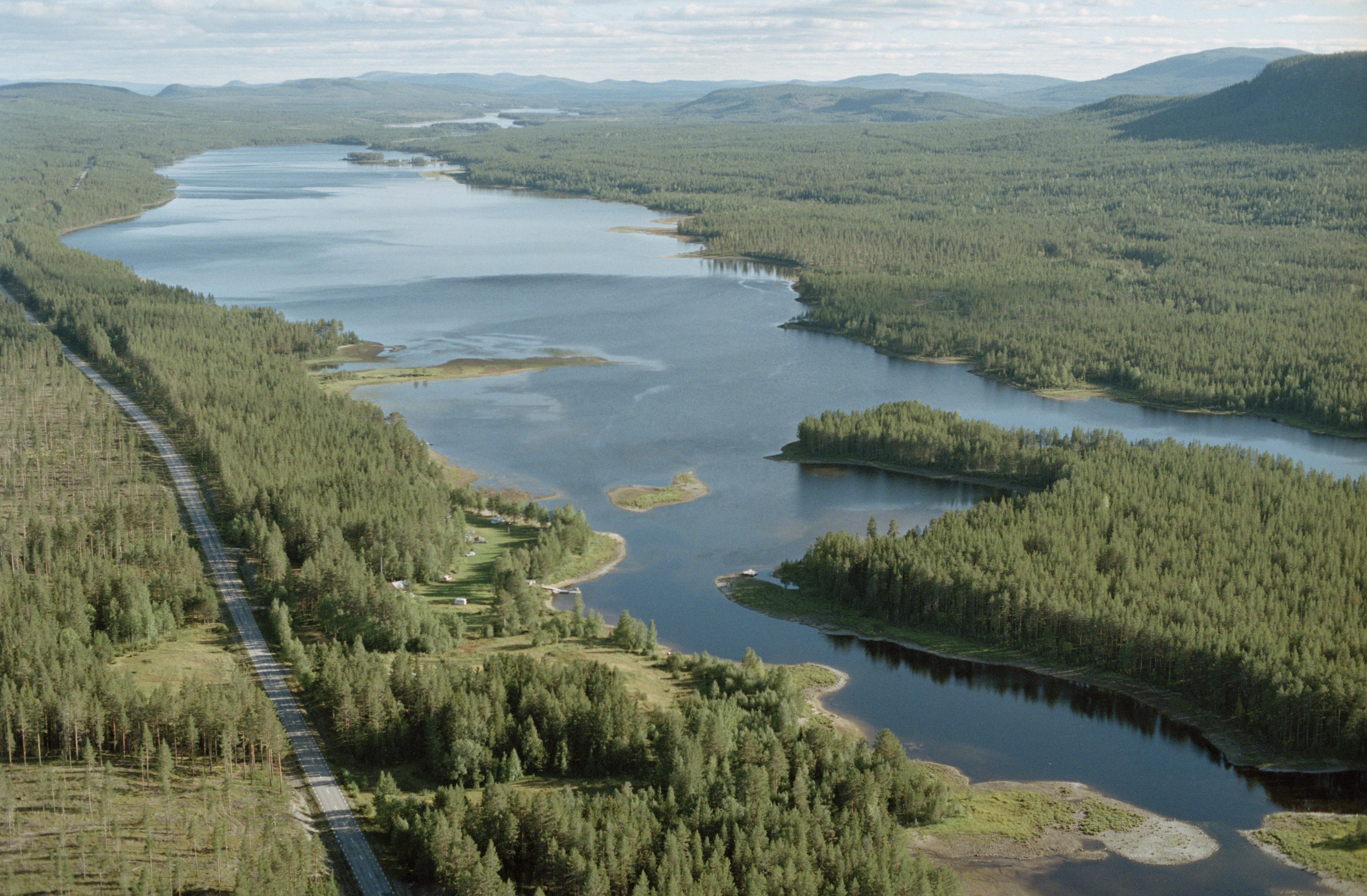 Beskrivning: Älven Ljusnan och sjön Orten vid gränsen mellan socknen Linsell och Hede (bildens nedre del). Område med boplatser,. På Ortholmen nere till höger boplats RAÄnr Linsell 10:1. Bilden är tagen mot (väderstreck): SSO