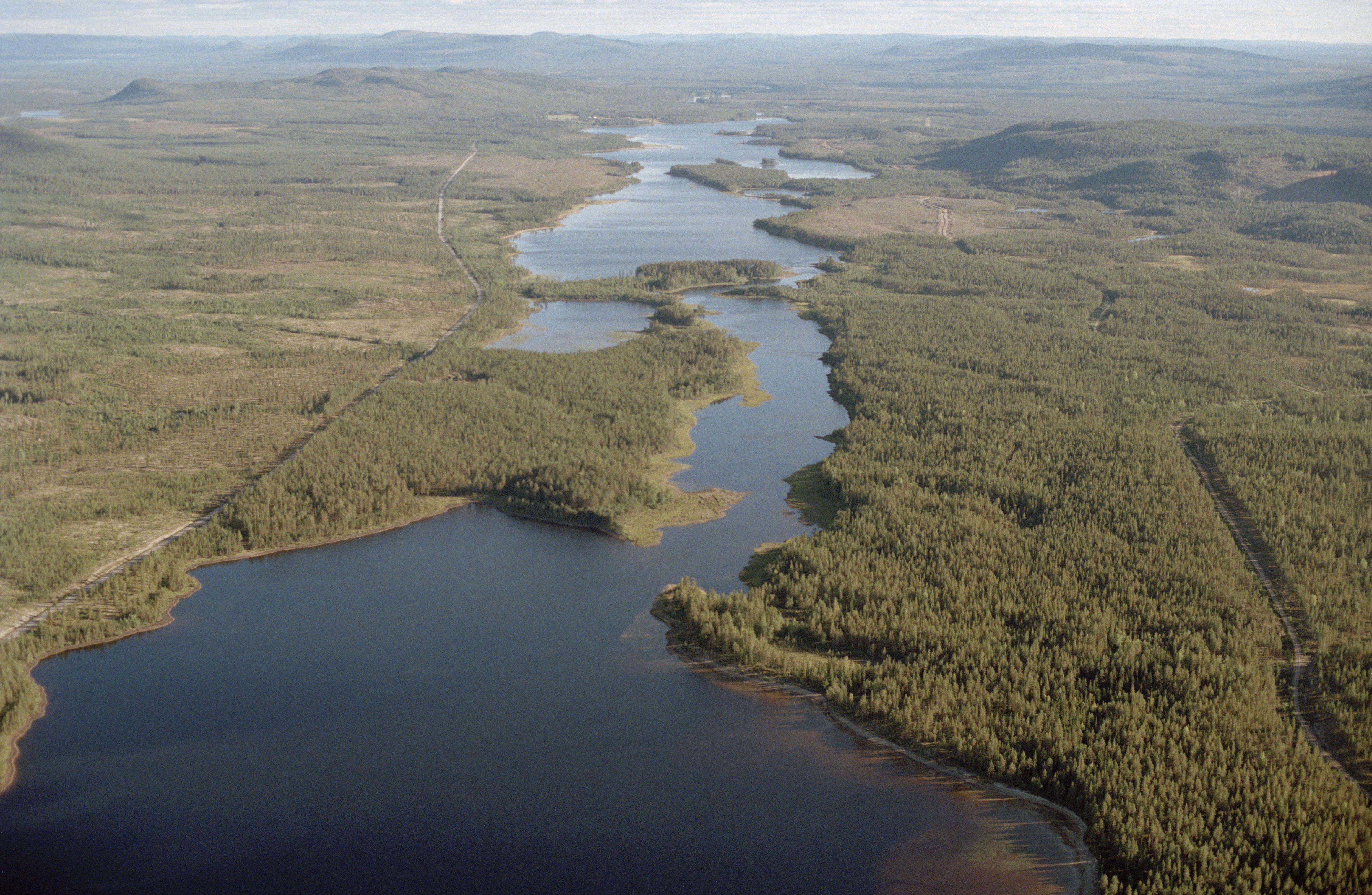 Beskrivning: Älven Ljusnan och sjön Över-Ransjön vid Näsvallen och Hån. Område med fångstgropar RAÄnr Linsell 132:1, 133:1-4, 134:1 m.fl. och boplats Linsell 68:1. Fiskarstugunäset i Neder-Ransjön och Ransjö by i bildens övre del. Bilden är tagen mot (väderstreck): SSO