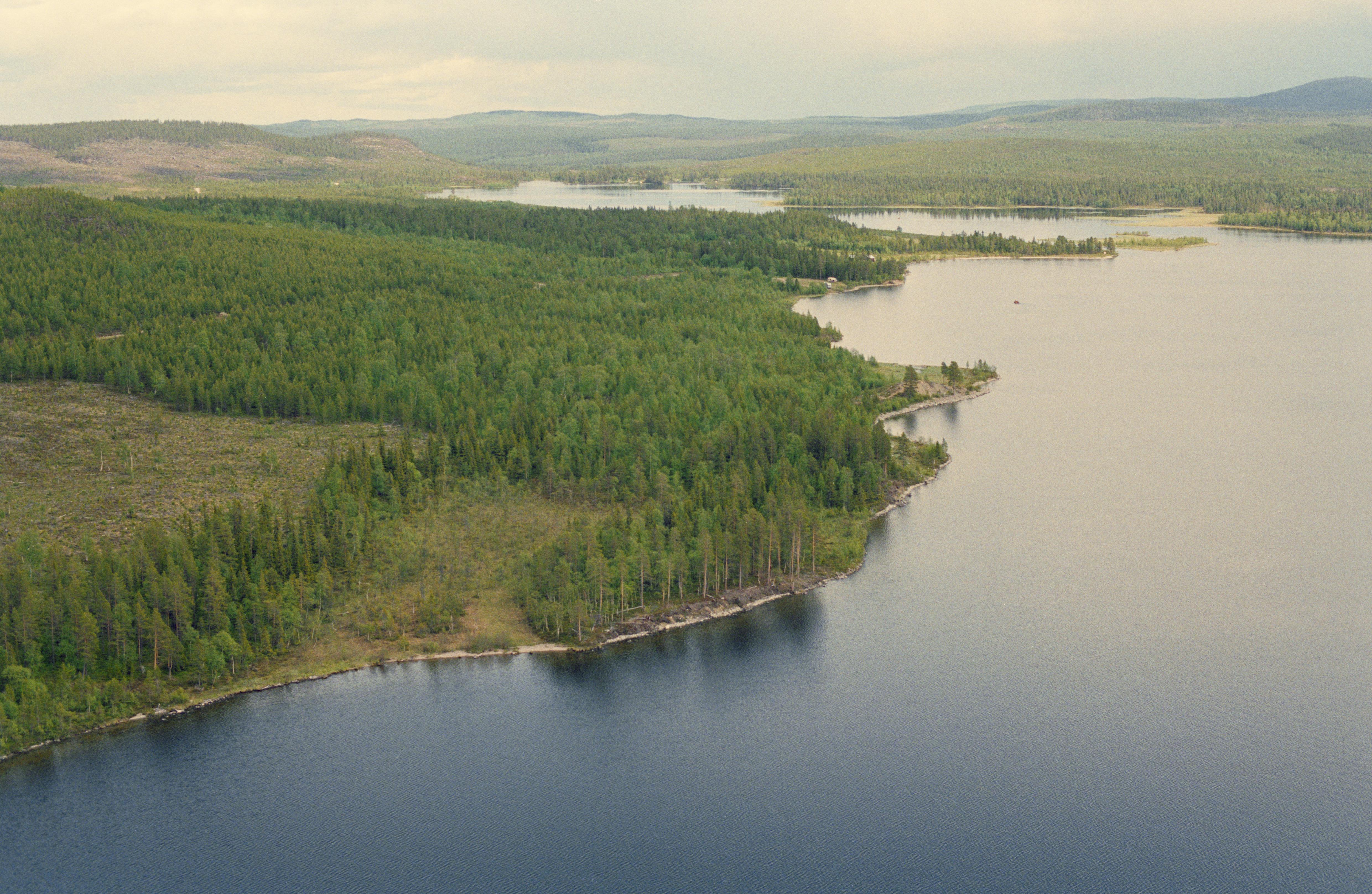 Beskrivning: Till vänster under bildens mitt gravfält Krankmårtenhögen (skrivs även (Krank-Mårtenhögen) RAÄnr Storsjö 9:1 vid Storsjön. I området även boplats RAÄnr Storsjö 154:1 och 254:1, fångstgrop Storsjö 155:1 m.m. Bilden är tagen mot (väderstreck): ONO