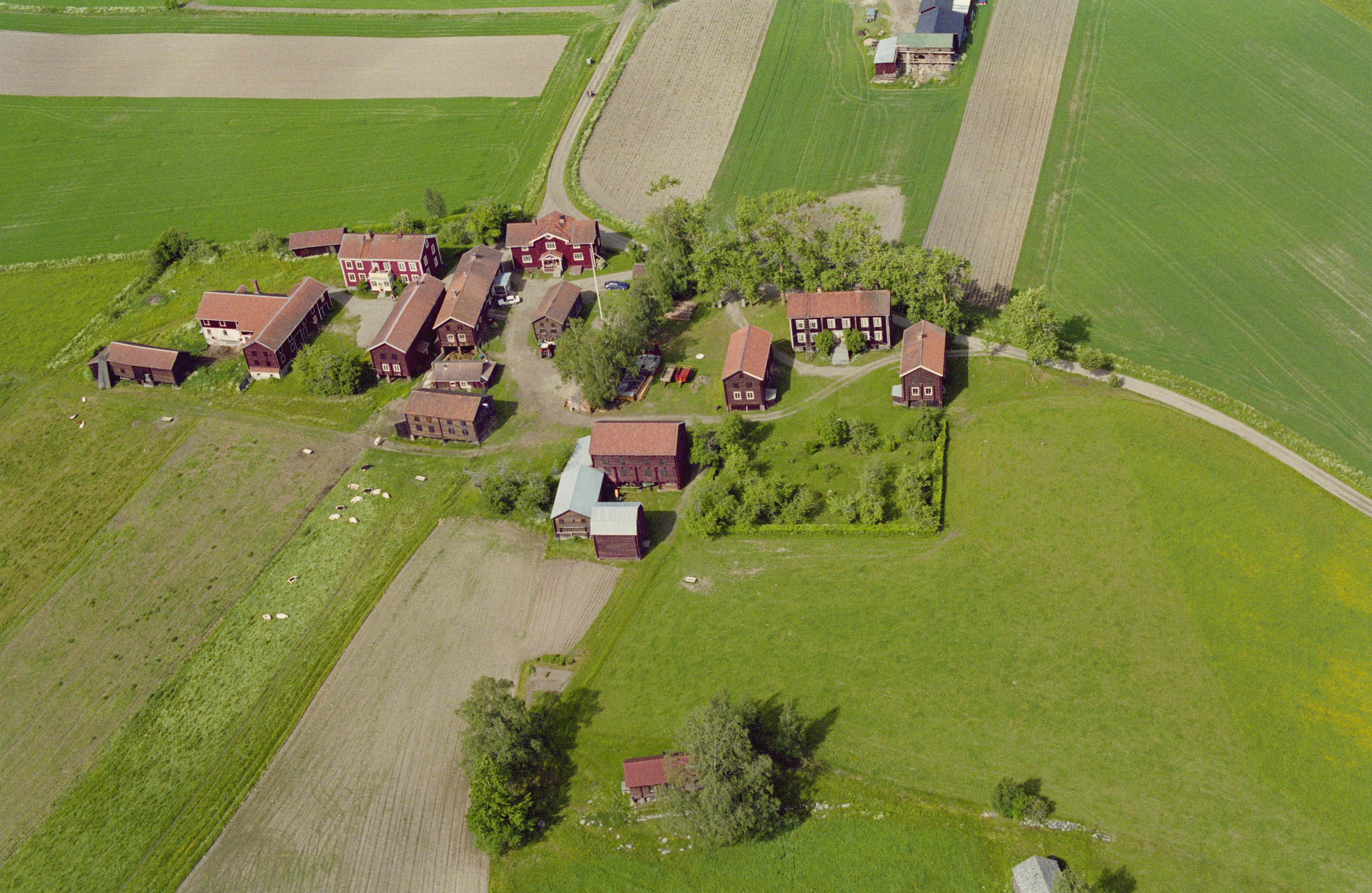 Beskrivning: Västerängs by med fyra hälsingegårdar. Bykärnan har tre gårdar: Ol-Ers, Erst-Mickels och Schäffners (i bilden) och norr om bykärnan Bommens (ej i bilden). Byn blev kulturreservat i 2002. Bilden är tagen mot (väderstreck): NNO