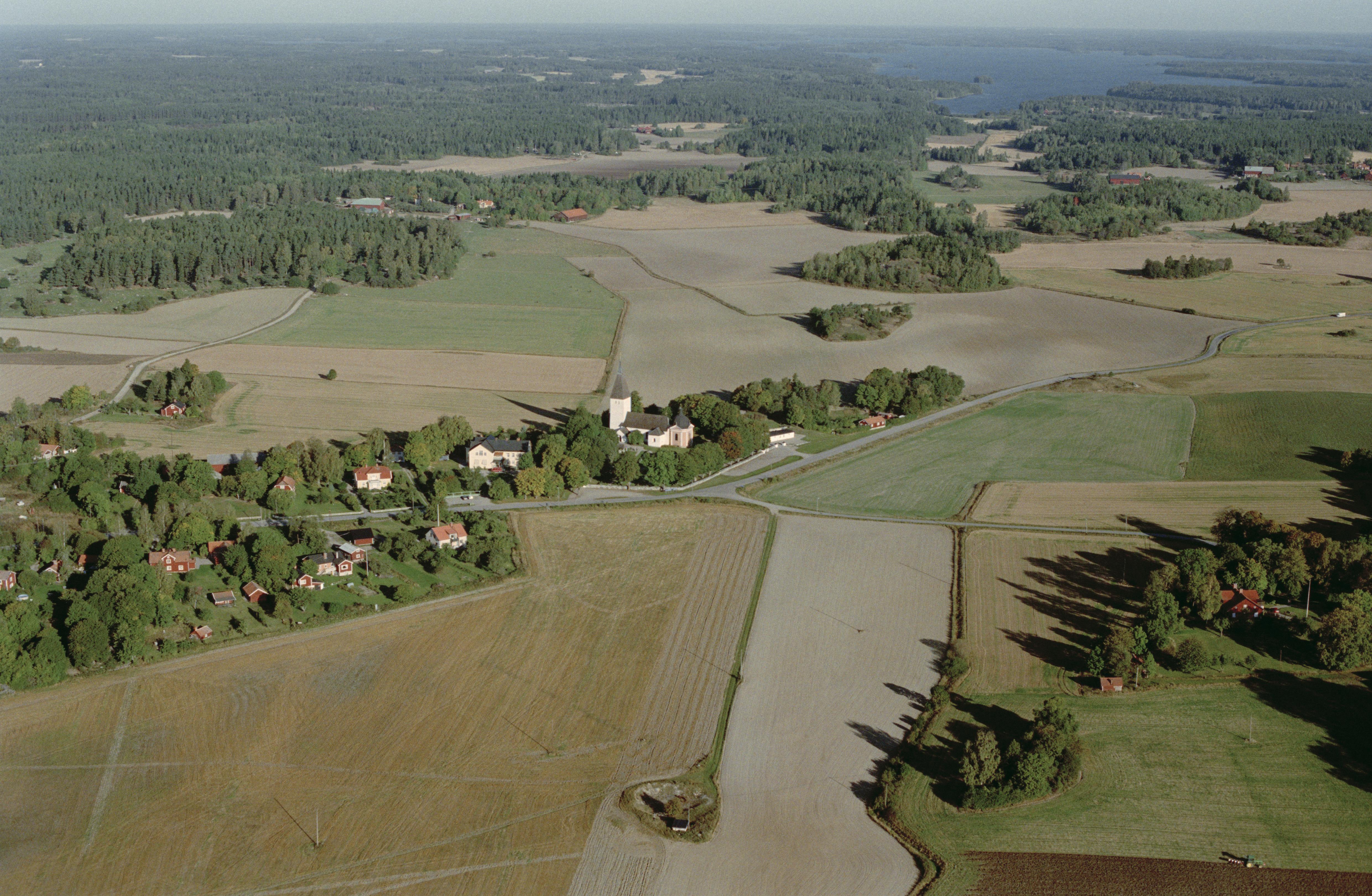 Beskrivning: Ytterselö kyrka och kyrkby. Bilden är tagen mot (väderstreck): NNV