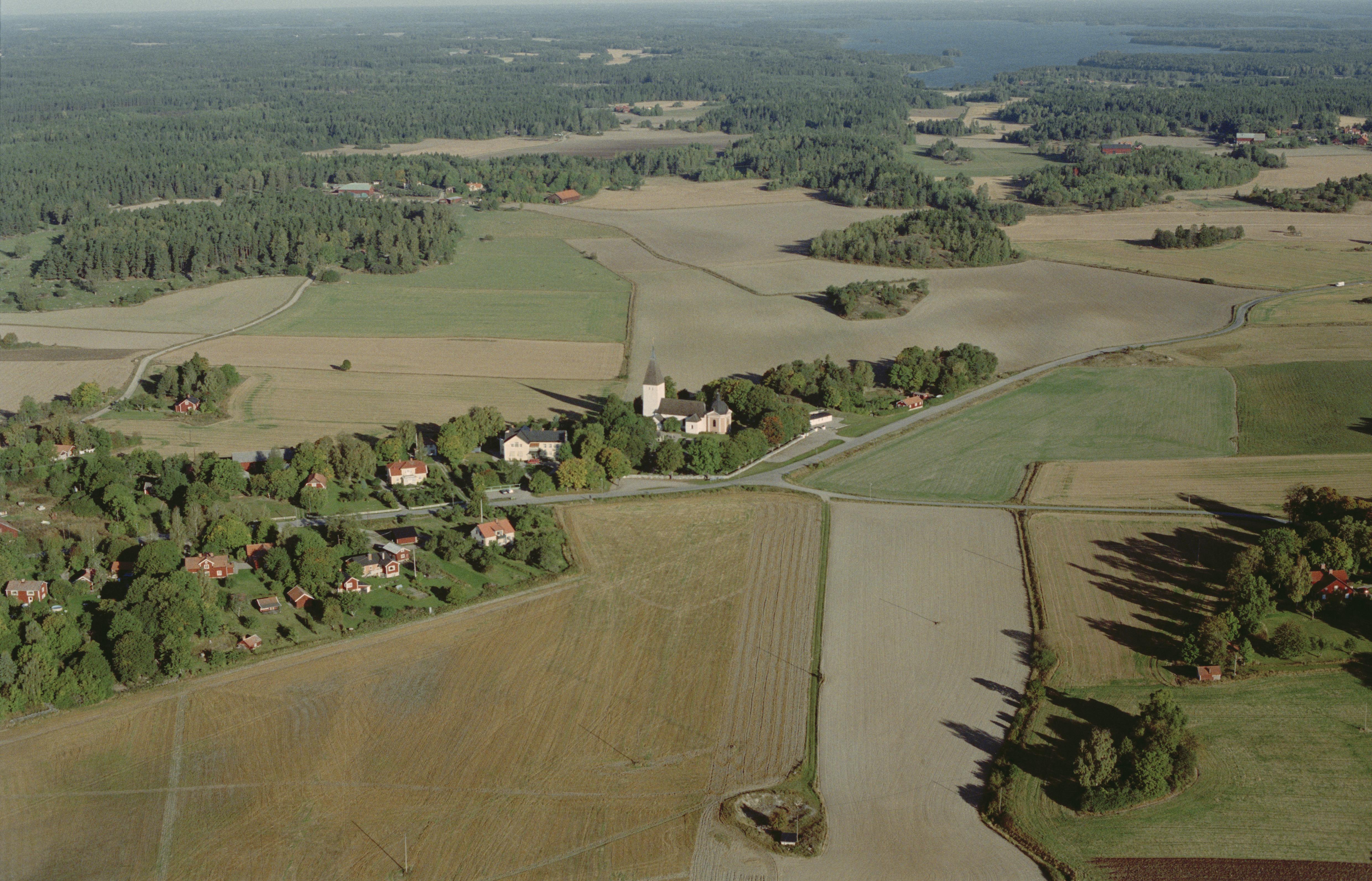 Beskrivning: Ytterselö kyrka och kyrkby. Bilden är tagen mot (väderstreck): NNV