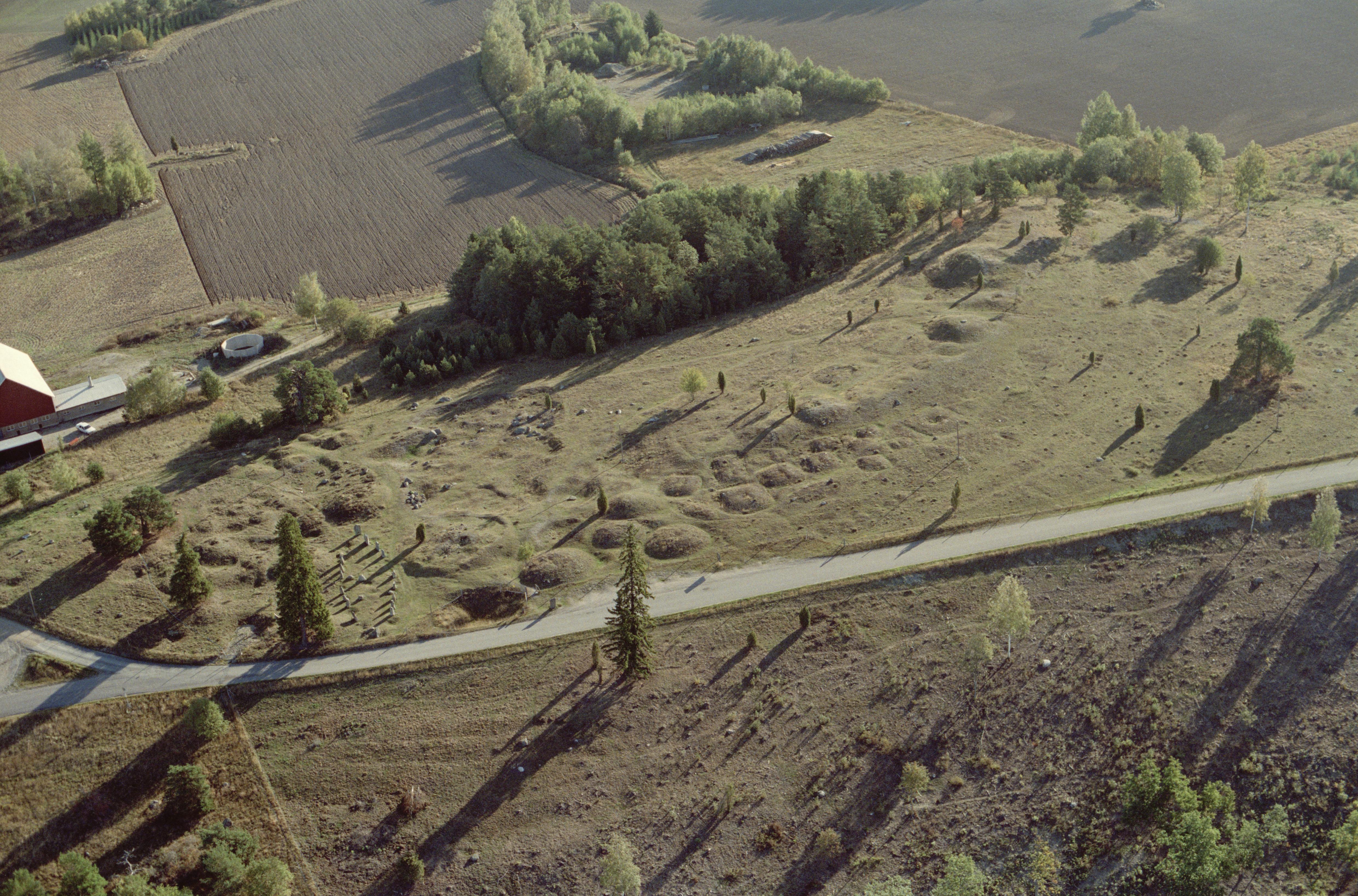 Beskrivning: Åsa gravfält RAÄnr Ytterselö 123:1 med bl.a. skeppssättning, runristning RAÄnr Ytterselö 123:2 och hällristning RAÄnr Ytterselö 304. Bilden är tagen mot (väderstreck): Ö