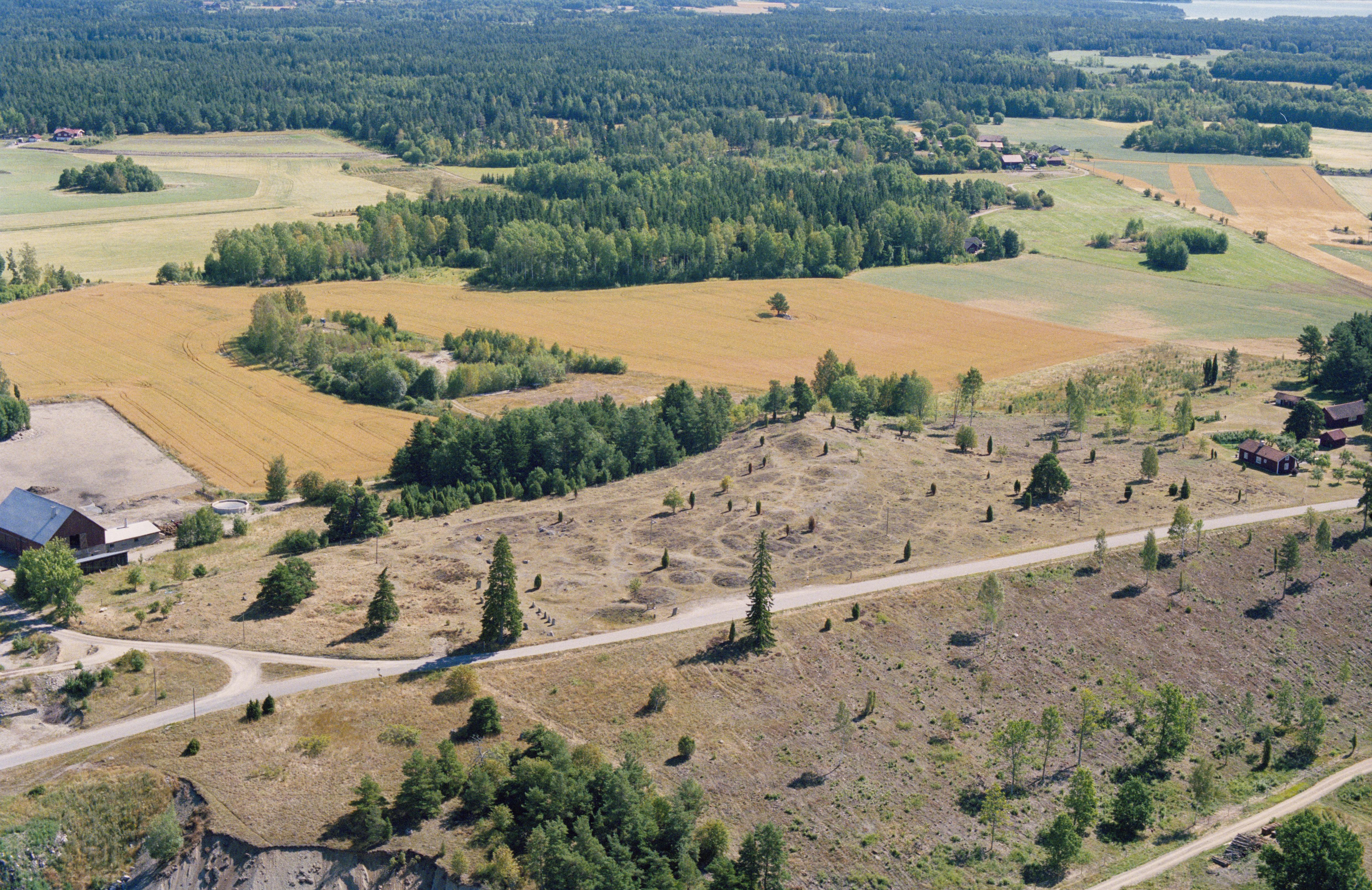 Beskrivning: Åsa gravfält RAÄnr Ytterselö 123:1 med bl.a. skeppssättning, runristning RAÄnr Ytterselö 123:2 och hällristning RAÄnr Ytterselö 304. Bilden är tagen mot (väderstreck): Ö