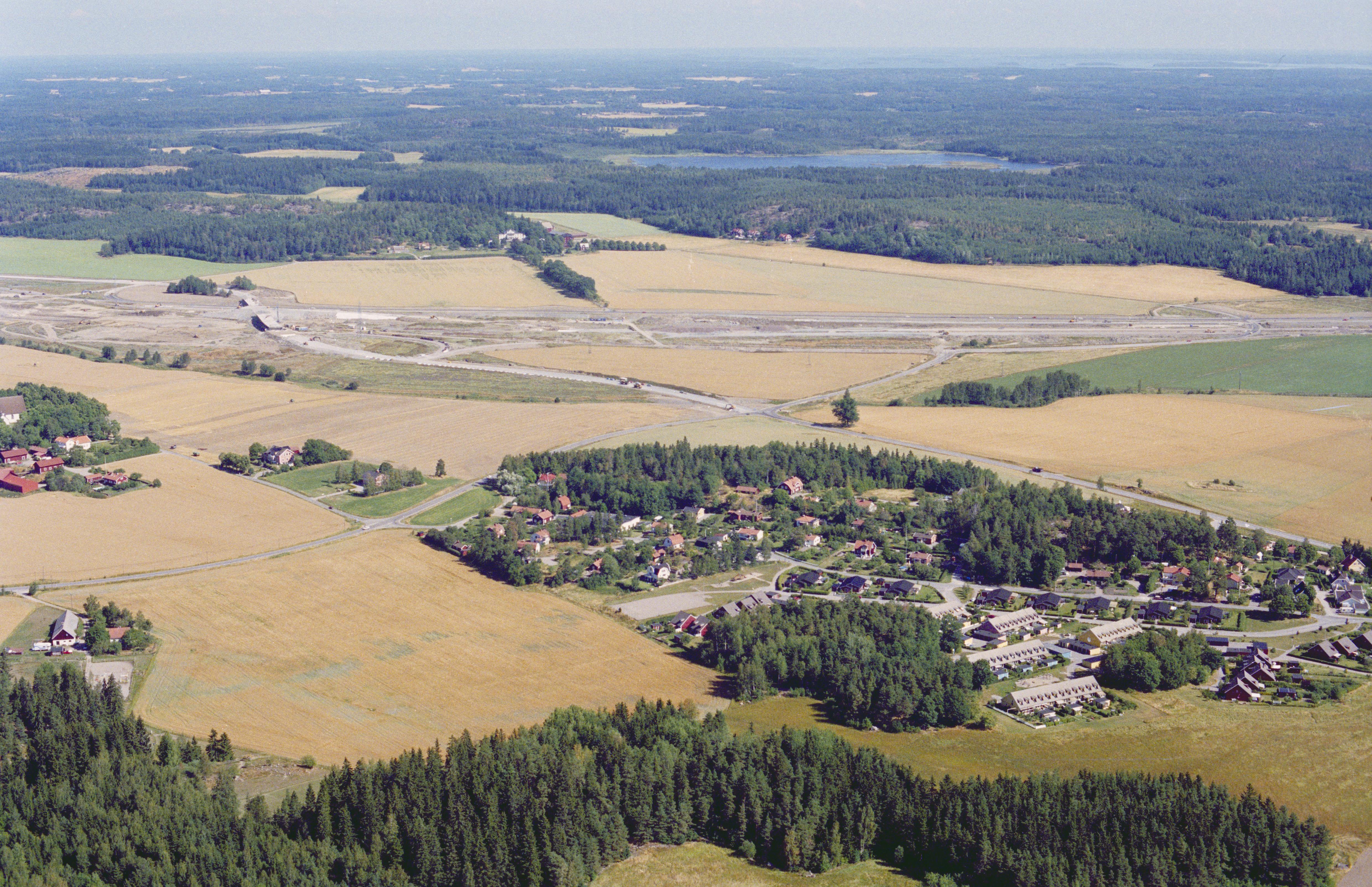 Beskrivning: Skämbylöts by. I bildens övre del Arkeologisk undersökning innan bygge av väg E20 norrost om Åkers kyrka och Löta å. Grav- och boplats RAÄnr 271:1-2, 268:1, 282:1, 283:1, m.fl. Bilden är tagen mot (väderstreck): ONO