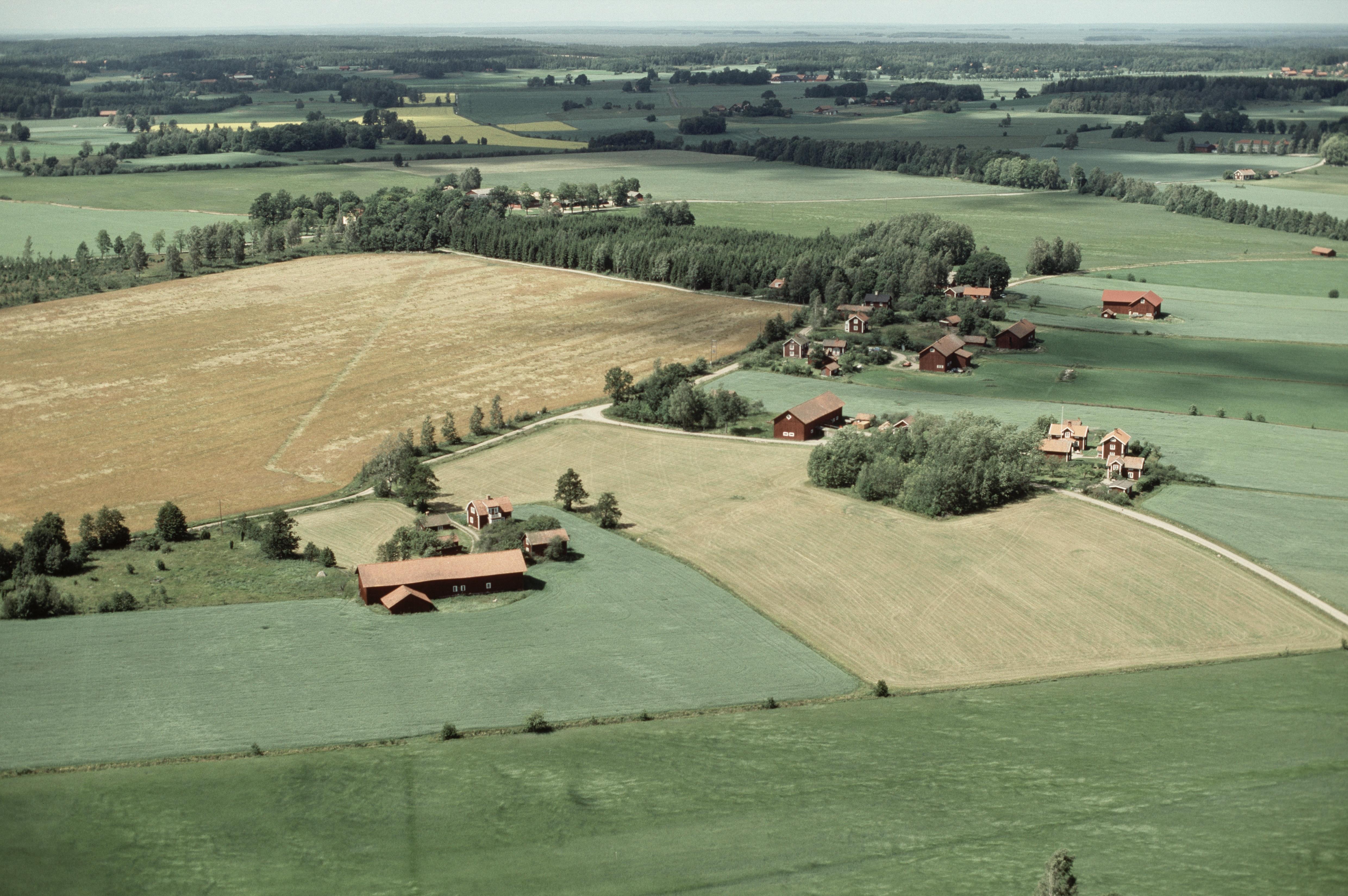 Beskrivning: Hulla by. Hulla gård till vänster i bildens övre del. Till vänster om bildens mitt fyndplats (stenyxor) RAÄnr Österåker 3:1. Gärsån uppe till höger. Bilden är tagen mot (väderstreck): NV